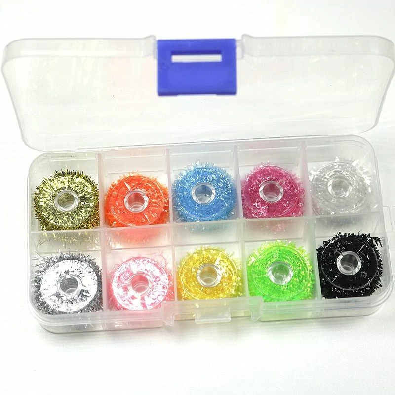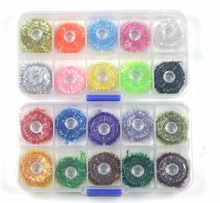Tinsel Chenille Fly Tying Material Length: about 5M/spool(10 colors/set) Chenille Width: about 7mm, 0.28" Color: 20 colors Packing: 1 Boxed (With 10 reel) 2 combo to choose from combo 1 and combo 2