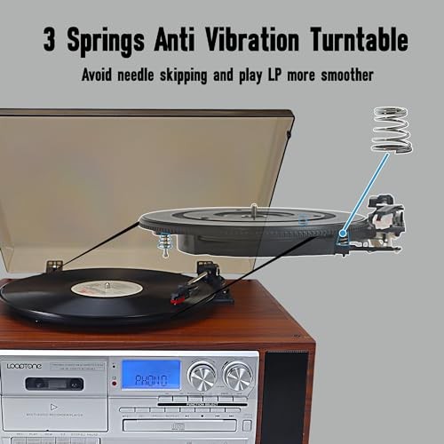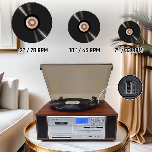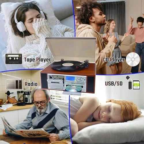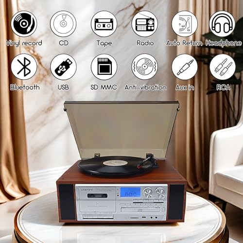 10 in 1 Bluetooth in/Out Record Player 3 Speed Vinyl Vintage Turntable CD