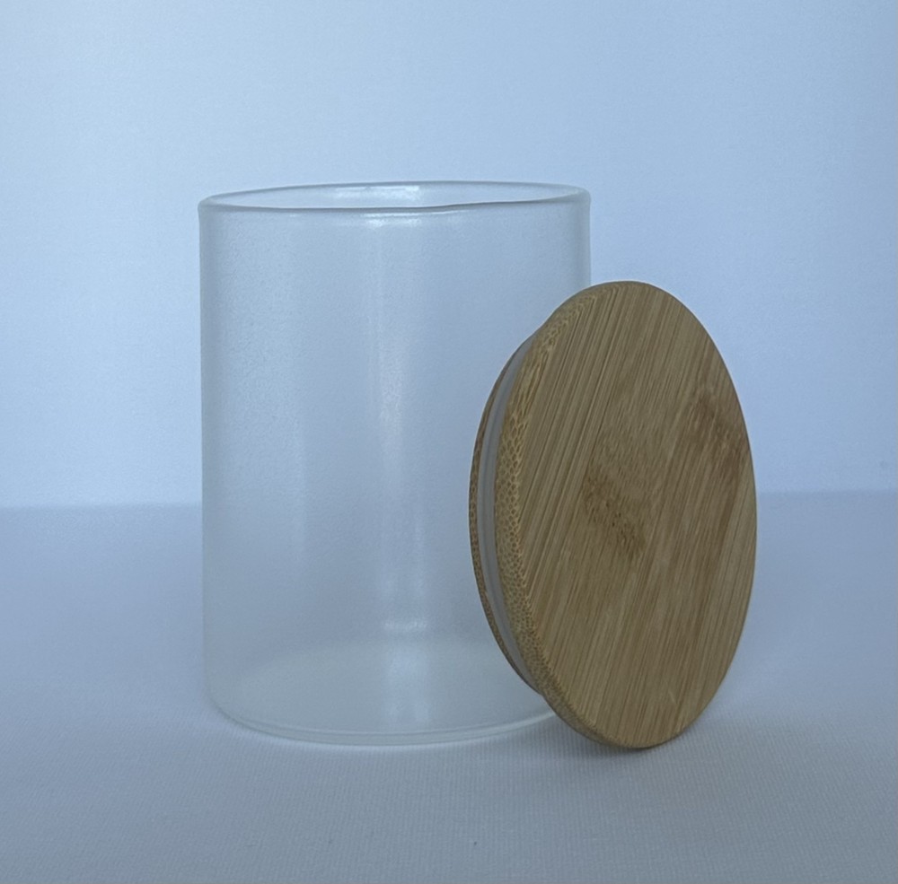 10 oz GLOW IN THE DARK Sublimation Candle Jar Glass with Bamboo Lid- BLANKS Features: -Matte Glass -Wooden Lid -BPA Free -Coated for Sublimation -GLOW IN THE DARK CANDLE NOT INCLUDED