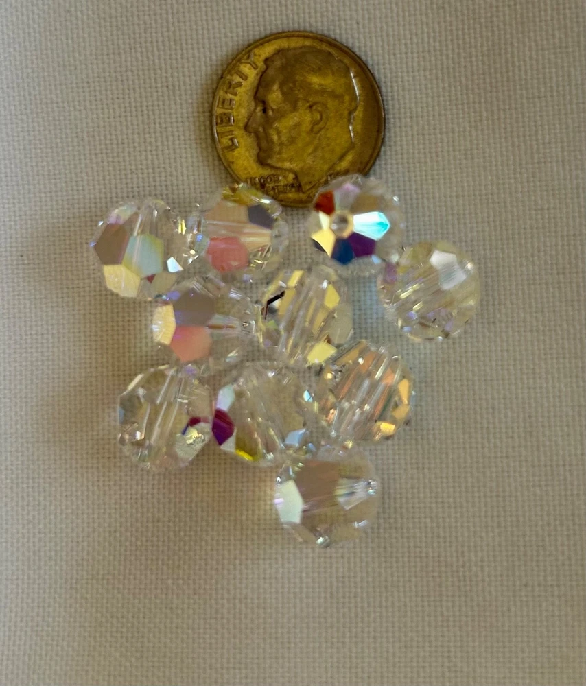 10 pieces of Genuine Swarovski Crystal 10mm Crystal AB loose beads. These beautiful, new 5000 style round crystals are perfect for birthstone and holiday jewelry. Bridal / Wedding Jewelry Visit my store for other Swarovski crystal colors, styles and sizes including birthstone mixes . I also carry this style in the 4mm, 6mm and 8mm sizes. FREE SHIPPING AND HANDLING ON THIS ITEM!!!