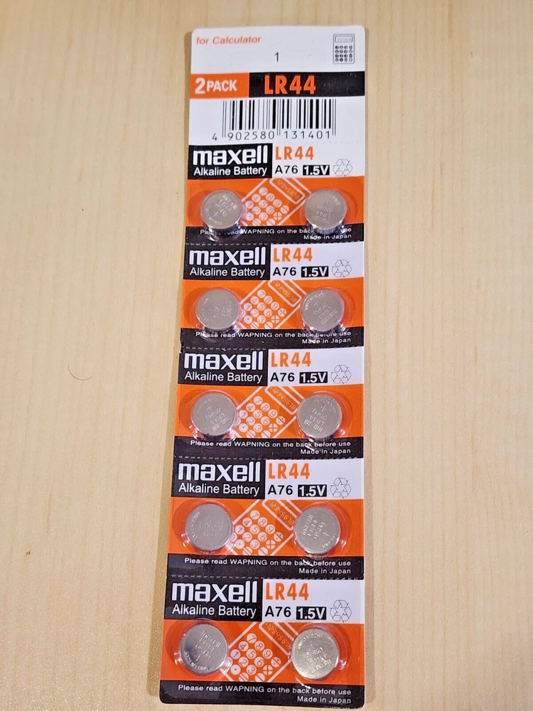 Voltage: 3 V Battery Size: LR44 Country/Region of Manufacture: China Chemical Composition: Alkaline Coin/Button Cell Sub-Type: Lr44 UPC: Does not apply Quantity: 10 Type: lr44 Expiration Date: 12/2031 gtin13: Does not apply Brand: Maxell Amp Hours: 105mAh