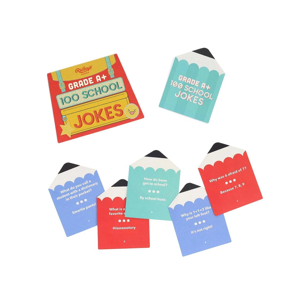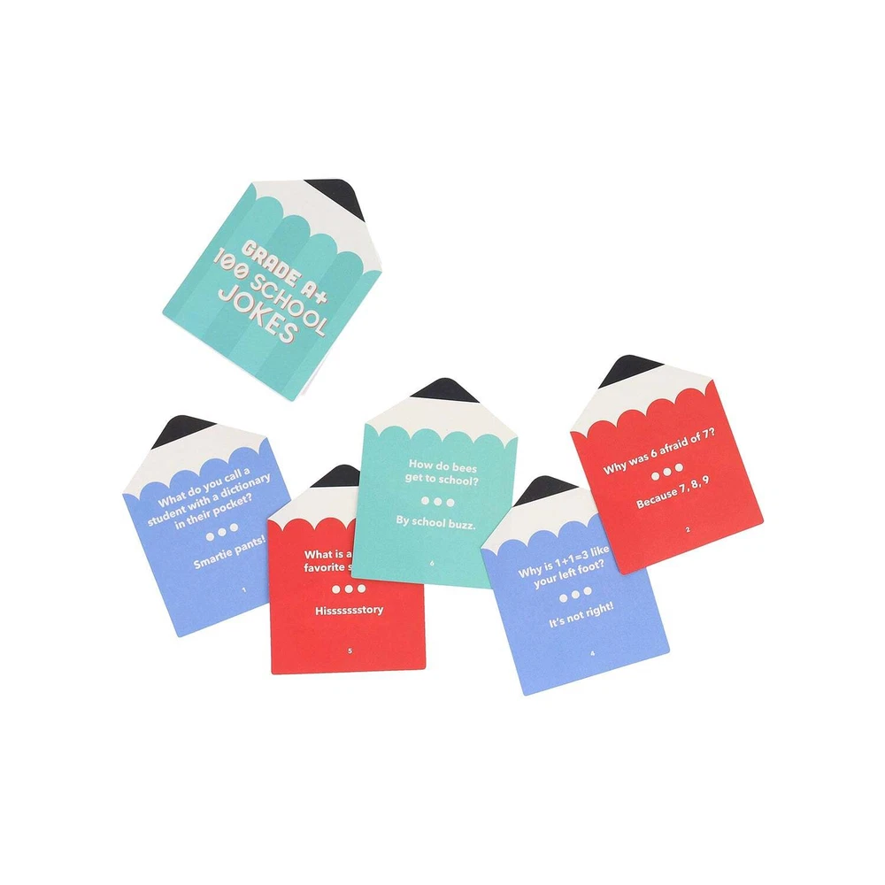 Official eBay Store 100 Back to School Jokes Comes in backpack-style card packaging. Ages 8+, 1+ players, average 15 minutes. Printed on FSC cards and comes with paper bellyband. SHIPPING RETURNS PAYMENT $6.99 flat rate shipping Australia wide. Free Shipping for orders over $99 All products are eligible for 30 Day Returns Payment via Paypal or EFT Bank Transfer ABOUT OUR COMPANY Looking for a unique, fun and exciting gift that's a little left of centre? You've come to the right place! Cookie Jar stocks a huge range of design-led gifts, toys and collectables sourced from all over the globe. © Copyright 2017