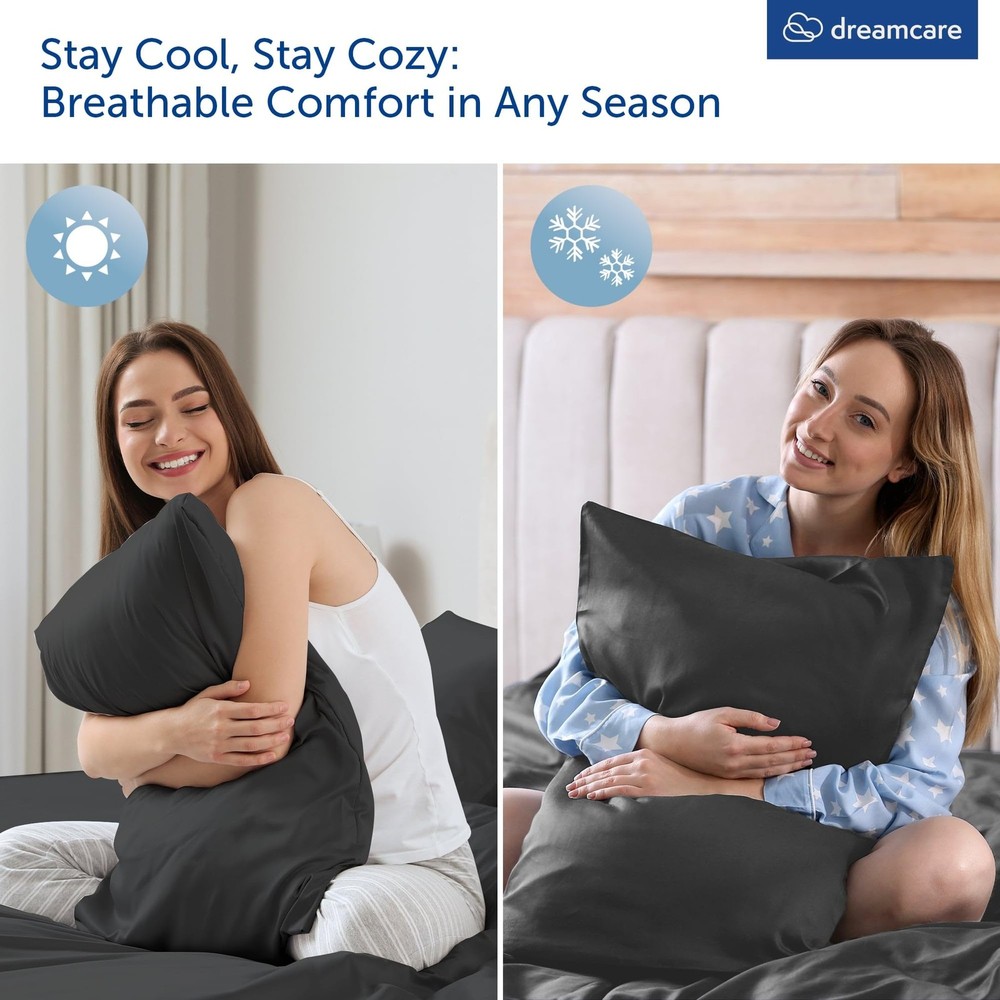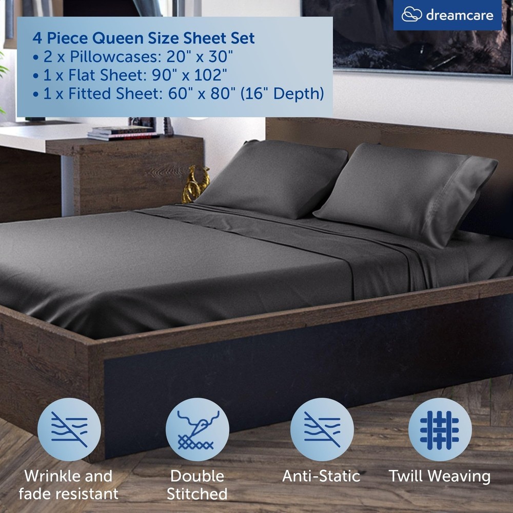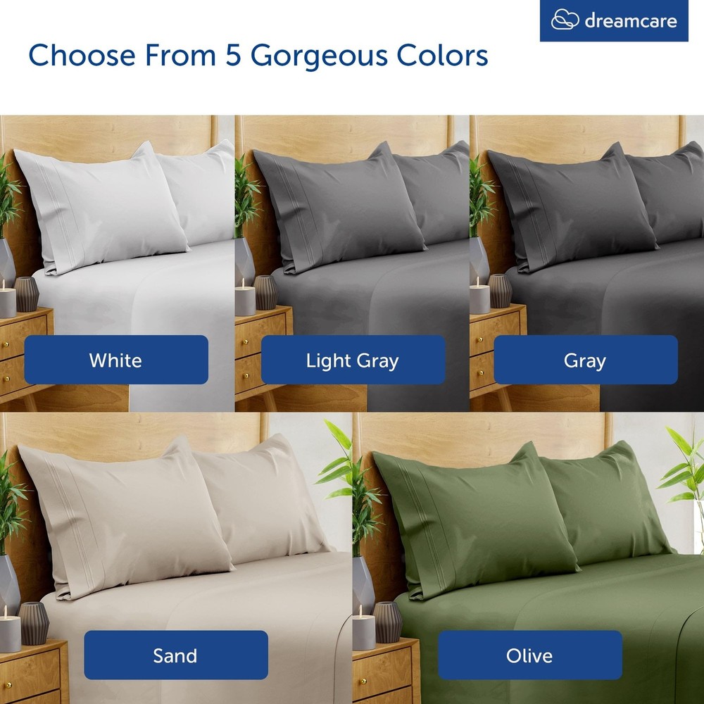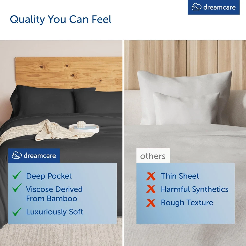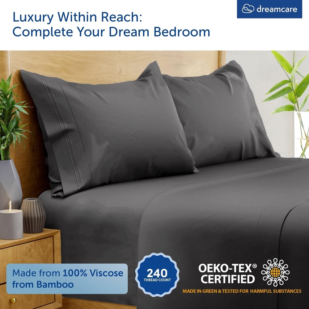 4pc Viscose Derived From Bamboo Sheets Queen Size – Luxurious Comfort, Perfect Fit, and Effortless Care Product Dimensions Pillow Cases (2): 20" x 30" Flat Sheet (1): 90" x 102" Fitted Sheet (1): 60" x 80" (16" deep) Available Colors: Gray, White, Light Gray, Sand, Olive Why Choose Sheets Queen Size Bed Set? Luxurious Comfort: Enjoy the silky softness of 240 thread count viscose derived from bamboo cooling sheets queen size sheets. Perfect Fit: Designed for mattresses up to 16" deep, this queen sheet ensures a snug and secure fit. Easy Care: This queen sheet is machine washable for effortless maintenance. High Quality: These bed sheets queen size are made from 100% viscose derived from bamboo. Safe and Certified: This viscose derived from bamboo sheet set is OEKO-TEX Certified for your peace of mind. Upgrade your bedding with the Viscose Derived From Bamboo Queen Sheets 4pc Set and experience the ultimate in comfort and quality. Available in a range of elegant colors to match any decor. These are the perfect cooling sheets for hot sleepers. Order your queen sheet set viscose derived from bamboo today and enjoy a luxurious sleep every night! Silky Soft for Ultimate Comfort - Experience the luxurious comfort of our beautiful 240 thread count viscose derived from bamboo sheets queen size bed set that are silky soft, ensuring a smooth and cozy sleep. Perfect Fit for Deep Mattresses - Our viscose derived from bamboo cooling sheets queen for hot sleepers are designed to perfectly fit mattresses up to 16" deep. No more struggles to get your queen sheet set to stay in place - enjoy a snug and secure fit all night long. Effortless Care and Maintenance - Say goodbye to time-consuming and complicated laundry routines. Our viscose derived from bamboo sheet set are not only incredibly soft but also machine washable, making them easy to clean and care for. 100% Viscose Derived from Bamboo - Get everything you need for your queen sized bed in one convenient package. This queen sheet set deep pocket viscose derived from bamboo sheets set includes 2 pillow cases (20" x 30"), 1 flat sheet (90" x 102"), and 1 fitted sheet (60" x 80" x 16"). OEKO-TEX Certified - Rest easy while sleeping on our OEKO-TEX Certified queen sheets deep pocket. Our Viscose derived from bamboo deep pocket queen sheets have undergone rigorous testing and have been proven to be free from harmful substances.
