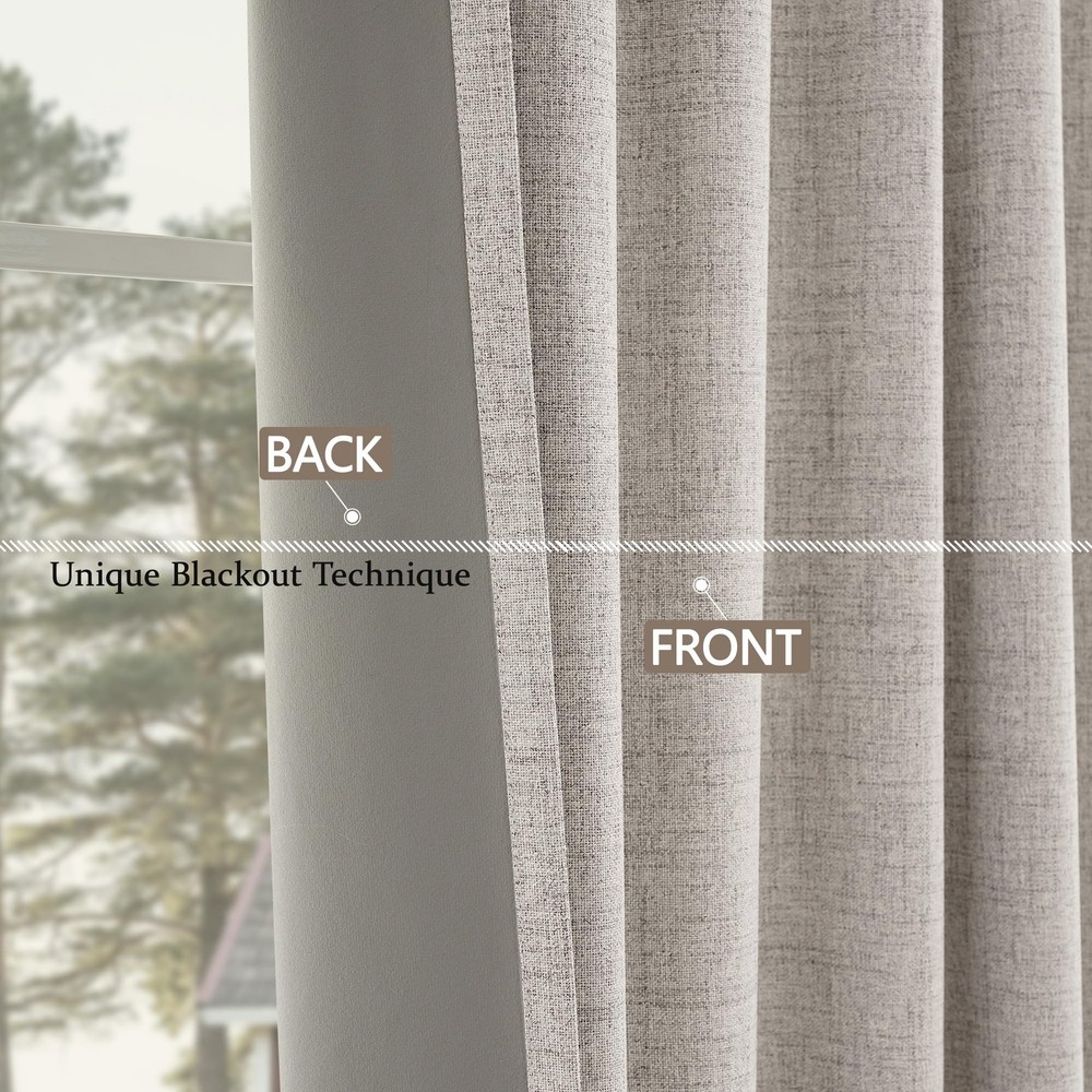 Features: 100% BLACKOUT MATERIAL linen look full blackout curtains are made of faux linen textured fabric with 3 layers.Curtains for living room can 100% block sunlight and ultraviolet rays and prevent furniture from being exposed to the sun.The natural curtains have soft feel, exquisite workmanship, high curl and very durable - not easy to fade under direct sunlight for a long time. INTUITIVE ADVANTAGE: Thick curtains well protect privacy and give you a sufficient sense of security. Curtains for bedroom can block the noise from the outside to a certain extent and bring a good sleep environment to you. As a decorative home accessories, our curtain is very suitable for your bedroom, living room, children's room and nursery. RELATIVE ADVANTAGEDue to three-layer weaving technology,thermal curtains can prevent heat loss in winter and block the entry of light and heat in summer. Achieving indoor temperature balance would help saving air conditioning cost.Install natural lined curtains for living room today to keep your home warm and live in a green way. READY MADEEach package contains 2 panels of grey curtains. Each panel measures 52 x 84 inch (W x H). With 8 silver rings, inner diameter is 1.6 inch. Eyelet curtain is easy to install and slide and can be easily installed into any standard curtain poles. More, this beautiful home decor would make your home elegant and natural. WE'RE HERE TO HELP black out curtains are easy to care,machine washable under 30 degrees, use mild detergen.Iron at low temperatures.Customer satisfaction is our top priority always! Products are returnable and replaceable within 30-days for the premium quality of our blackout curtain. Not satisfied with the curtains & drapes? Send us a message with any questions or concerns.