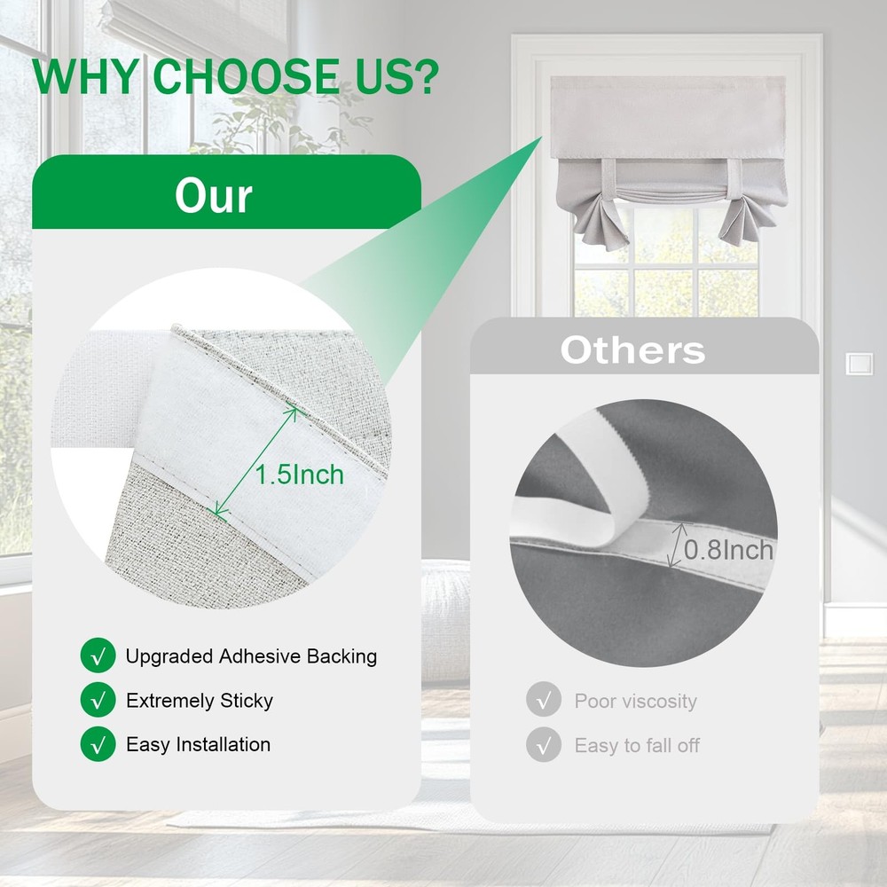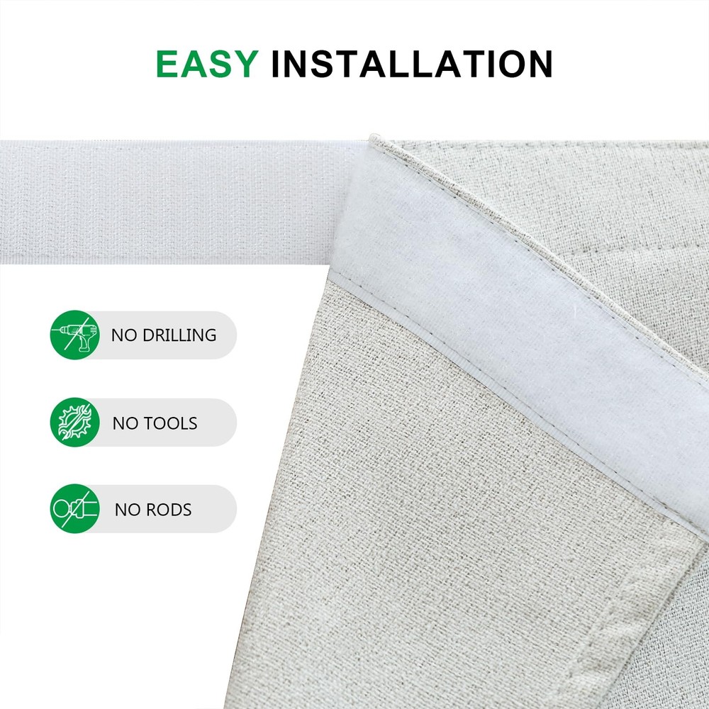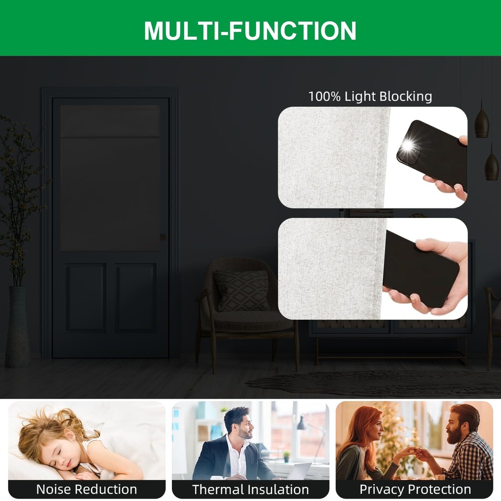 100% Blackout Included: 1 panel 26" wide x 40" length door curtain & 1pcs 1.57” wide strong adhesive strip in package. Premium Material: These casual linen draperies are made from faux linen fabric with the same color and texture on both sides, soft and wrinkle-resistant. The high-quality imitation linen texture door curtains show the natural beauty of linen and are comfortable to touch. Multi-Function:100% blackout, have top performance on energy saving and noise reducing,keep privacy, create airy and breathable sweet family scene. While these durable elegant linen curtain panels will also decorate your windows and rooms with new great effect. Easy Installation: The built-in sticky straps allow you to easily install the blackout curtain on any window without any tools, drilling, or curtain rods. You can tie up the curtain with straps attached for sightseeing or tie it down for full privacy. Wide Application: Many different colors and sizes for your choice. Meet various needs and purposes of different people. Our blackout curtain are perfect for a modern, rustic, neutral, classic, or traditional style homes. These blackout linen door curtains can blend in easily with your bedroom, living room, dining room, laundry room, kitchen, or any room in your home. Easy Care: Machine Wash Cold, delicate cycle with mild detergent. Do not bleach. Tumble Dry Low. These door curtains aren't easy to fade. Cool the iron if necessary to remove potential wrinkles from the packaging.