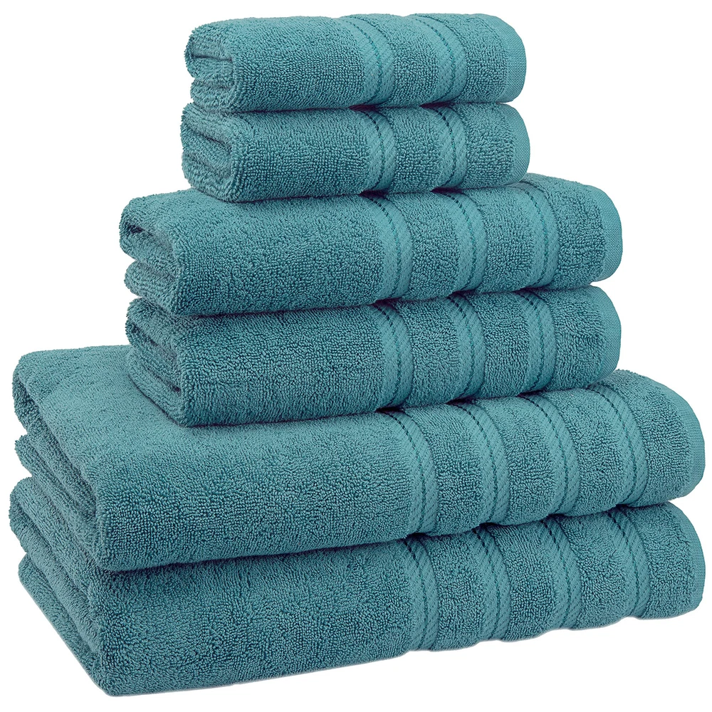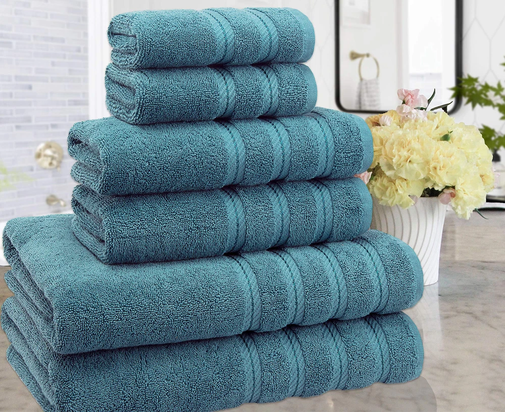 ✅ SOFT to TOUCH : 6 Piece Turkish Towel set is made of 100% Carde Ringspun Cotton, Fluffy Towel Set is extremely Absorbent ✅ HEAVY WEIGHT: This 590 GSM Turkish 6 Piece Towel Set Includes 2 Bath Towels (27 inch x 54 inch), 2 Hand Towels (16 inch x 28 inch) and 2 Washcloths (13 inch x 13 inch) ✅ DURABILITY: Double Stitched Hem Finishing on Long Sides for Maximum Durability ✅ CERTIFICATION : Towels are OEKO-TEX STANDARD 100 Certified and Tested for Harmful Substances. ✅ THIS ITEM IS RETURNABLE AND COMPLIES WITH 'S POLICY.