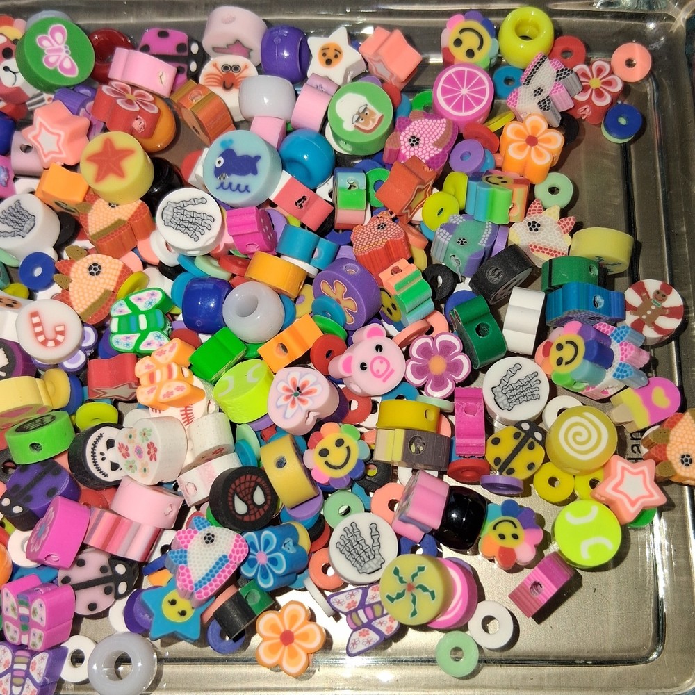 This product is a set of over 100 colorful and detailed polymer clay beads in round shape plus other shapes measuring between 6-6.9mm in size. The beads are designed specifically for kids and teens to create their own jewelry and crafts.