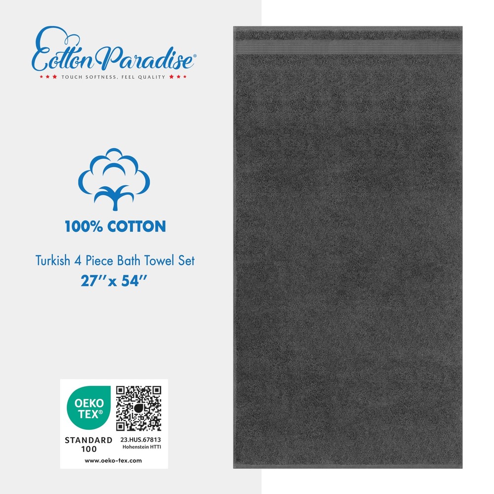 100% Cotton 4 Piece Bath Towels for Bathroom ✔ Turkish Bath Towel Set includes 4 Bath Towels (27 inch x 54 inch). ✔ This 100% Cotton Fluffy Luxury Bathroom Towels are Ideal for Families and Guests or to Give your Bathroom a Refresh with Different Color Options. ✔ Our Bath Towel Set Feel Luxuriously Soft and Thick with 600 GSM Weight, but are Light Enough to Wrap up and Relax for Hours After Shower. These Premium Bath Towels for Bathroom Complies with Amazon Return and Policy ✔ 100% Ringspun Cotton Fabric to Improve Absorbency; These Hotel Spa Quality Luxury Extra Large Bath Towels Made with a Double Stitched Hem for Long Durability. ✔ OEKO-TEX STANDARD 100 23.HUS.67813 Hohenstein HTTI Certified and Tested for Harmful Substances 100% Cotton 4 Piece Bath Towels for Bathroom Shipping We offer FREE shipping on all orders! We ship within Three business days of payment, usually sooner. We use a selection of shipping services such as UPS, FedEx, USPS etc. We only ship to the lower 48 states, no APO/FPO addresses or PO Boxes allowed. Local pickups and combined shipping options are not provided at this time. Return You can return a product for up to 30 days from the date you purchased it. Any product you return must be in the same condition you received it and in the original packaging. Please keep the receipt. Payment We accept payment by any of the following methods: PayPal Please pay as soon as possible after winning an auction, as that will allow us to post your item to you sooner! Feedback Customer satisfaction is very important to us. If you have any problem with your order, please contact us and we will do our best to make you satisfied. Contact Us If you have any queries, please contact us via ebay. We usually respond within 24 hours on weekdays. Please visit our eBay store to check out other items for sale! Thank you for shopping at our store.