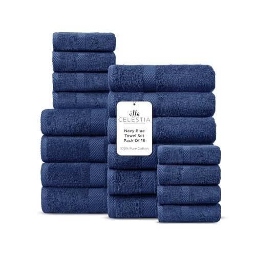 100% Cotton Navy Blue Bath Towel Set - 18-Piece Bundle