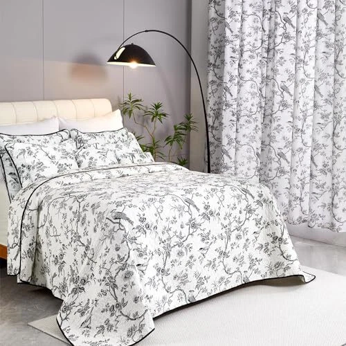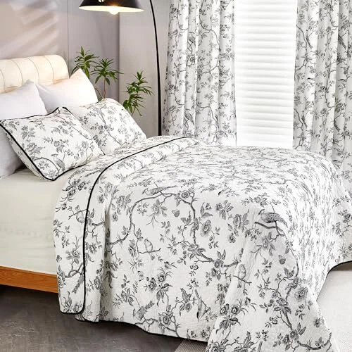 Return Policy Fast Delivery Trusted seller 100% Cotton Quilt King Size Black Bird Bedding Set Double Printing Lightweight Quilt Reversible Coverlet Bedspread with Pillow Shams All Seasons 3 Pieces (106"x96") Product Description Lightweight 100% cotton shell and polyester filler quilt set with fade resistance to dress up your bed in any season Reversible black piped edges quilting with special black bird and branch printed patterns introduce simple indoor refreshing style Designed for easy care, machine washable and tumble dry on low Use as a quilt, bedspread, coverlet or bed cover layered over a duvet in winter or alone in summer Package includes 1 King quilt 96in x 106in and 2 pillow shams 20in x 26in, pillow inserts not included Shipping Returns Payment Shipping Shipping is FREE to all addresses other than APO/PO boxes in the lower 48 states. All our stock ships from US-based warehouses. Shipped via USPS or UPS (depending on location and package weight) Unless stated otherwise, all orders will ship within 24-72 hours of your payment being processed. Check our feedback to see the great reviews of FAST shipping we offer. Returns Seller does not accept returns Payment We currently accept payment via eBay managed payments only. Once payment is cleared, we will dispatch your shipment within 1-3 business days. Please refer to the "Shipping" tab for more information regarding shipping speed to your destination.
