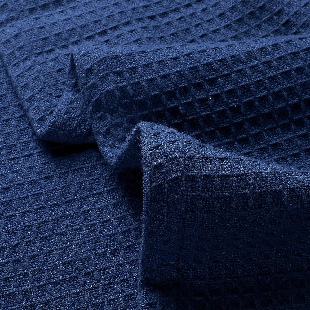 100% Cotton Waffle Thermal Blanket Queen Size All-Season Navy Blue