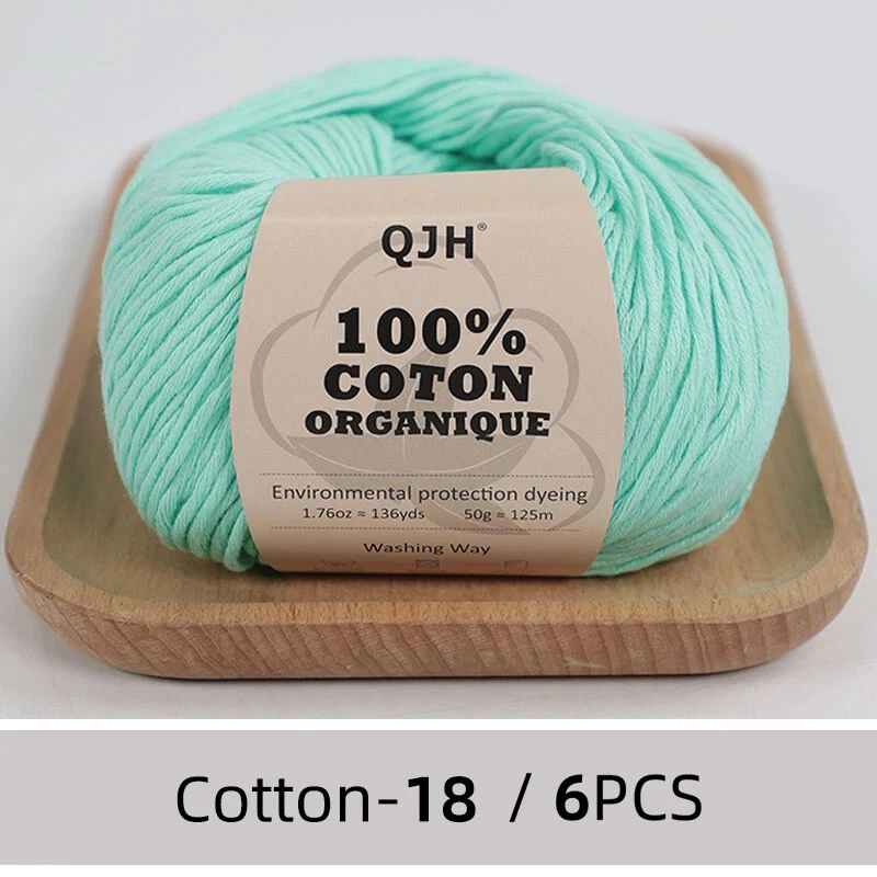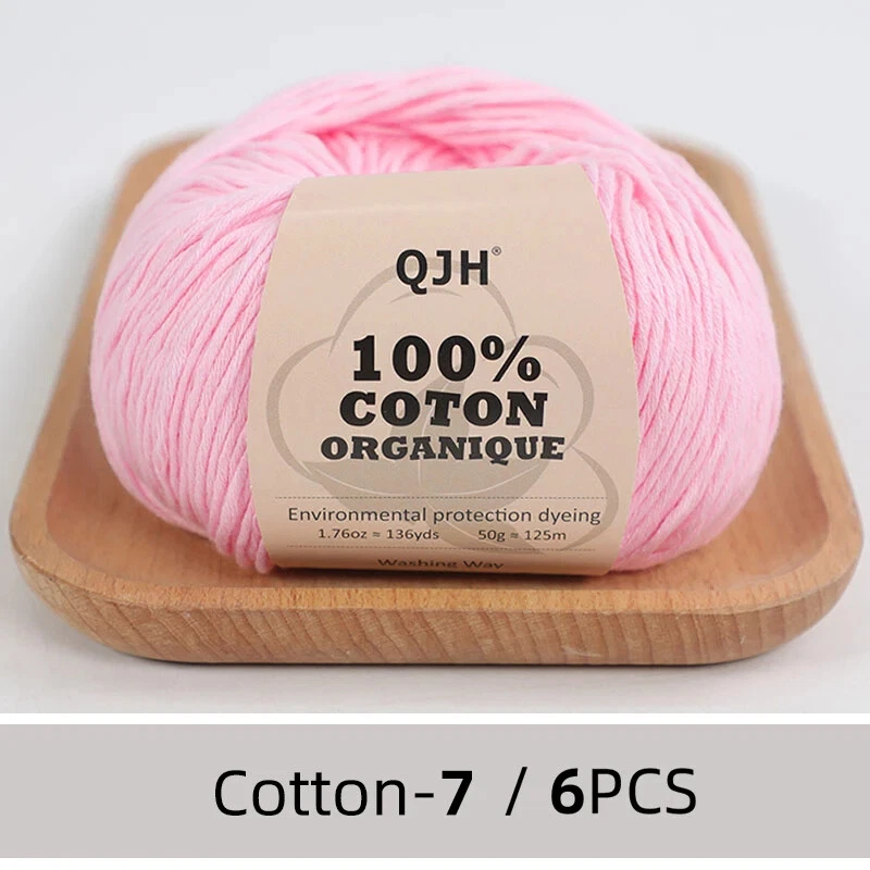 QJH 100% Cotton Yarn, Cotton Baby Sport Weight Yarn, Amigurumi Yarn, Summer Soft Yarn, Crochet/Knitting Yarn - 6 Pcs - 10 Ply Description Content: 100% Cotton Weight/yardage: 1.76 oz (50 g) = approx 136 yds (125 m) Recommended needle size: US 2,5 / 3 mm Gauge: 4" x 4" / 10 x 10 cm = 24 sts x 32 rows Machine wash on gentle cycle warm 40°C / 104F. Dry Flat QJH 100% Cotton Yarn is spun from combed, long, Egyptian cotton fibers. The yarn is conformed by a number of threads that are twisted together in pairs, before being twisted together again. This method results in extra durable garments with great surface properties! The yarn can be used in projects for all ages, specially summer wear, baby clothes and accessories. NOTE: Please be aware that the colors shown may vary from screen to screen in the same way that shades may vary slightly from dye lot to dye lot.