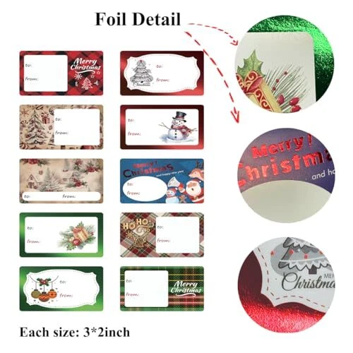 100 Count Large Foil Christmas Sticker Labels,Self Adhesive Gift Gift Sticker 3