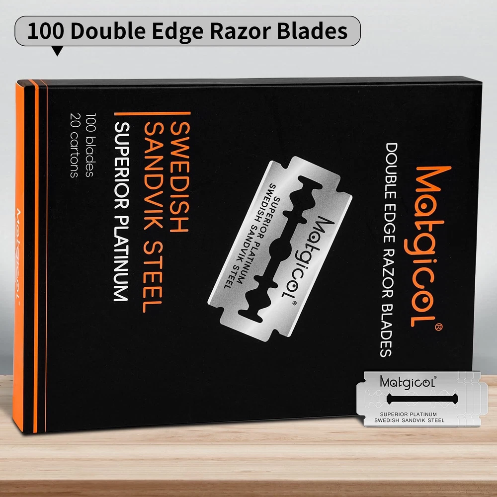 Upgrade your grooming experience with our Double Edge Safety Razor Blades, crafted for the modern man. These premium blades are made from Swedish stainless steel, ensuring a durable and sharp edge for every shave. Each razor blade is designed to offer a clean, precise, and comfortable shave, making it ideal for both daily use and special occasions. Our blades are compatible with most men’s razors and shavers, offering a versatile fit for double-edged safety razors. Whether you're shaving at home or on the go, these blades provide the sharpness and smoothness you need. The sharpest edges cut effortlessly through facial hair, minimizing irritation and delivering a smooth result with every stroke. This pack includes 100 razor blades, giving you long-term replacement blades for consistent shaves. Whether you're using a traditional razor or a modern bevel razorblade, these razorblades ensure a perfect fit. The razor blade heads are coated with a layer of premium Swedish steel, providing extra durability and a smooth glide. Ideal for both men's and women's grooming needs, these blades are safe to use and offer a revolutionary shaving experience. Whether you’re seeking a professional-quality shave or just looking for a convenient and cost-effective shaving solution, our blades deliver the best in performance. Compatible with a wide range of razors available on Amazon, this value pack ensures you always have a fresh replacement blade ready to go. Invest in the safety and precision of our Swedish stainless steel razor blades and experience the difference today. Premium Swedish Steel Blades: Crafted from the finest platinum-coated Swedish steel, these double-edge razor blades are designed for durability, sharpness, and a long-lasting shave Double Edge Design: Ideal for both safety and straight razors, providing two cutting edges for versatile shaving options Smooth & Precise Shave: Engineered for an effortless glide, these blades offer a smooth and precise shave, minimizing irritation and nicks, leaving your skin feeling fresh and clean Universal Fit for Men's Razors: Compatible with all standard double-edge safety razors and straight razors, making them a versatile choice for any grooming routine Ideal for All Skin Types: These premium blades are gentle enough for sensitive skin while maintaining the strength to tackle coarse or thick hair, delivering optimal performance for every shave