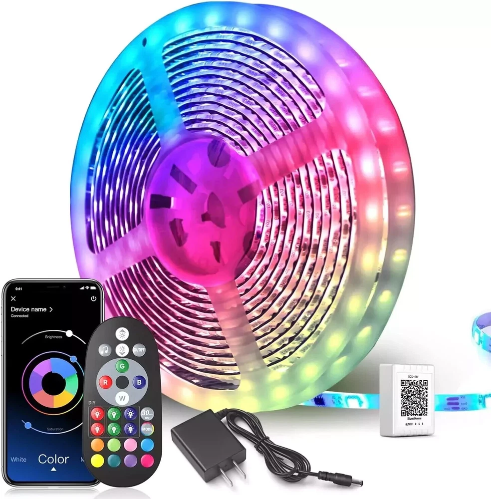Add a touch of magic to your bedroom or music festival with these 100 Ft LED Lights. With RGB color changing capabilities and 360 LED light sources, create your own unique ambiance using the app control feature. The upgraded 24-key remote with sound sensor technology allows for easy customization and control. These LED lights are perfect for indoor and outdoor use, and come with a built-in mic, Bluetooth, and IR remote connectivity protocol. The multicolor light direction and adjustable light shape make them perfect for any occasion, whether it be a movie night, music festival, or snowflake themed party. The item weighs 9.1 ounces and measures 10.31 x 6.69 x 0.83 inches. About this item ☑️【RGB STRIP LIGHTS IN 100FEET】:100ft led strip lights for bedroom,50feet /roll x2 rolls totally 100feet.it can be cut in the size as you want, and also can be connect to 100feet totally. Fulfill your long size requirement on decoration of LED Strip Lights. ☑️【SPECIAL MUSIC MODE】: Built-in high sensitivity mic, spectrum with light and colors adjusting automatically base on the ambient sound, LED lights sync with music. The strip light suit any type of music, including slow, relaxing tunes and dance music. ☑️【EASY INSTALLATION】: The strong backside self-adhesive tape make the led light strip easy application to most smooth surfaces. This RGB light strip is cuttable and linkable, we can cut it every 3 LEDs along the cutting marks. ☑️【TIMER FUNCTION】: It can be a Wake Up strip Lights as it can sign the time in App system.. ☑️ [ATTENTION]: 24hours customer service, USA customer service locally. Product Description 100 FEET LED STRIP LIGHTS SMART STEP BY STEP TO RUN THIS STRIP LIGHTS: 1.SCAN THE CODE THAT IN THE MANUEL,AND OPEN THE SAFARI 2.PUSH "GET" AND THEN START TO DOWNLOAD IT,THEN THEY WILL USE YOUR IPHONE ACCOUNT TO DOWNLOAD IT,NO NEED OTHER ACCOUTNT TO CREATE 3.OPEN THIS APP "HAPPY LIGHT",THEN YOU COME TO THE FIRST SCREEN PAGE YOU SEE ABOVE. 4."STYLE"SELECT ,YOU CAN ADJUST THE SPEED AND BRIGHTNESS,THERE ARE HUNDERDS OF STYLE CAN BE OPTION. 5."MUSIC"FUNCTION:YOU CAN PLAY ALL MUSIC THAT DOWNLOAD IN YOUR PHONE,AND CHOOSE LOOP PLAY OR SINGLE PLAY 6."MIC"FUNCTION,ON THE TOP LEFT CONNER,YOU CAN SLECT OPEN/CLOSE,AND YOU CAN SELECT STYLE AND SENSITIVITY. 7."TIMER"FUNCTION,IT CAN BE SCHEDULE THE TIME OF EVERDAY FOR LIGHT ON OFF AUTOMATICALLY,YOU CAN CHOOSE THE COLOR YOU WANT OR COLOR CHANGING STYLE LIKE STRONG SMOOTH OR WEEK SMOOTH. OVERALL,ON EACH FUNCTION ITEM,YOU CAN FIND THE GUIDE ON TOP BUTTON,HOPE YOU ENJOY IT. Led lights for bedroom IR Signal avoice more room decoration effect each other:In package,we put a remote inside also,if you want to use remote to handle it,there is a IR signal can be connect.and it will not effect each other if you put it in different room even short distance. SYNC TO MUSIC:After download the music in to the APP,you can use your phone to choose loop play or signle play,then color will be changing with Musci SYNC MIC Function:Mic means you can get it light up by sensitive,so it can be as a night light function.or a TV back lights. Timmer Function:It can be schedule time of everyday for light on or light off automatically,and you can sign the clock wake up time to choose what color you want to show or you want 3 color or 7color changing,it can be done.