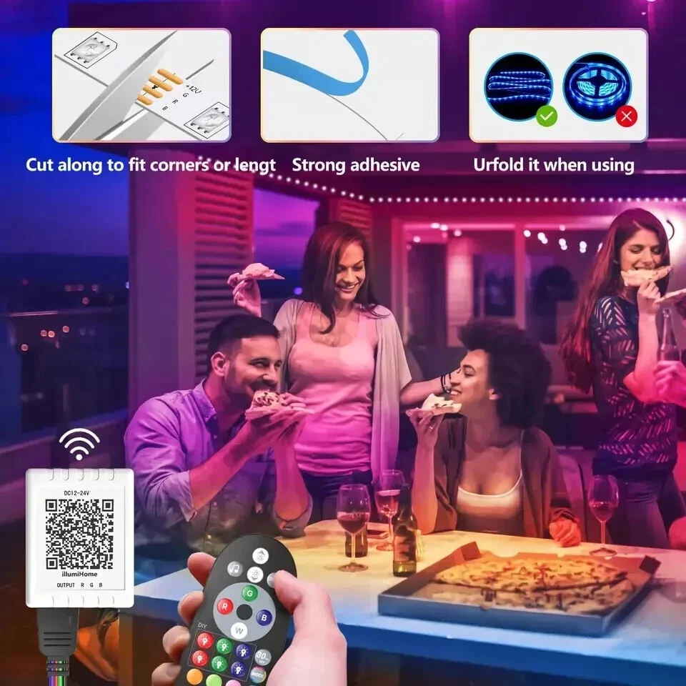 Theme: Movie,Music,Snowflake item_model_number: NOVASAT-0414-1728-134 control_style: App Control Installation Area: Indoor number_of_items: 1 Sensor Type: Light Manufacturer: Nexillumi Direct Brand: Nexillumi Direct Size: 100 Feet control_method: App controller_type: App Control batteries: 2 AA batteries required. Voltage: 12 Volts Control Style: App Control batteries_required: No part_number: NOVASAT-0414-1728-134 power_source: Corded Electric Occasion: Christmas gtin13: 744110139440 special_feature: function(f) {var _np=(window.P._namespace("DetailPageProductOverv light_direction: Adjustable item_weight: 9.1 ounces special_features: ② Upgraded 24-key remote with color DIY customization and 4 music wattage: 48 watts installation_area: Indoor & Outdoor indoor_outdoor_usage: Indoor connectivity_protocol: Built-in Mic, Bluetooth, IR remote light_source_type: LED shade_material: Plastic Lighting Technology: LED Room: Bedroom number_of_settings: 2 Cord Color: Multicolor Type: Does not apply sensor_type: Sound UPC: 744110139440 Style: 100ft LED Strip Lights number_of_light_sources: 360 light_color: Multicolor Color: Multicolor Material: Metal Light Shape: LED light strip batteries_included: No number_of_batteries: 2 AA batteries required. package_dimensions: 10.31 x 6.69 x 0.83 inches lighting_technology: LED Features: RGB