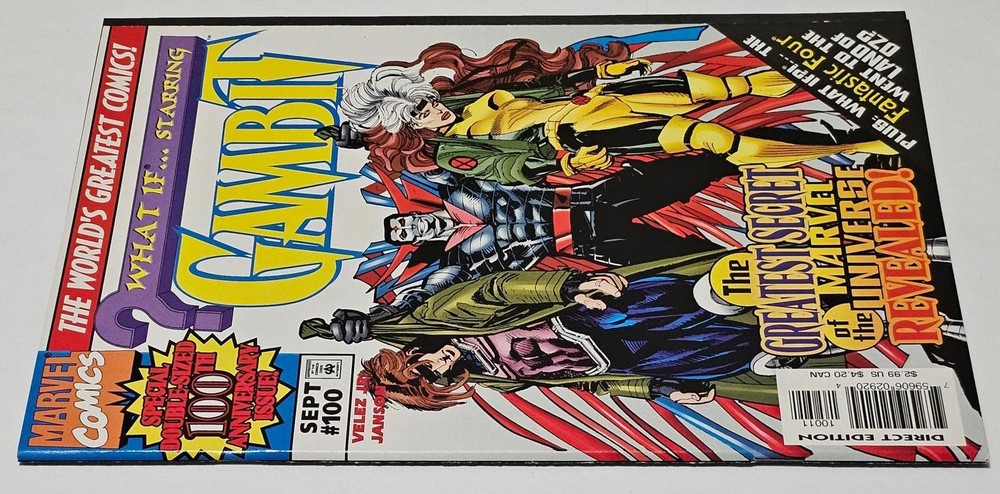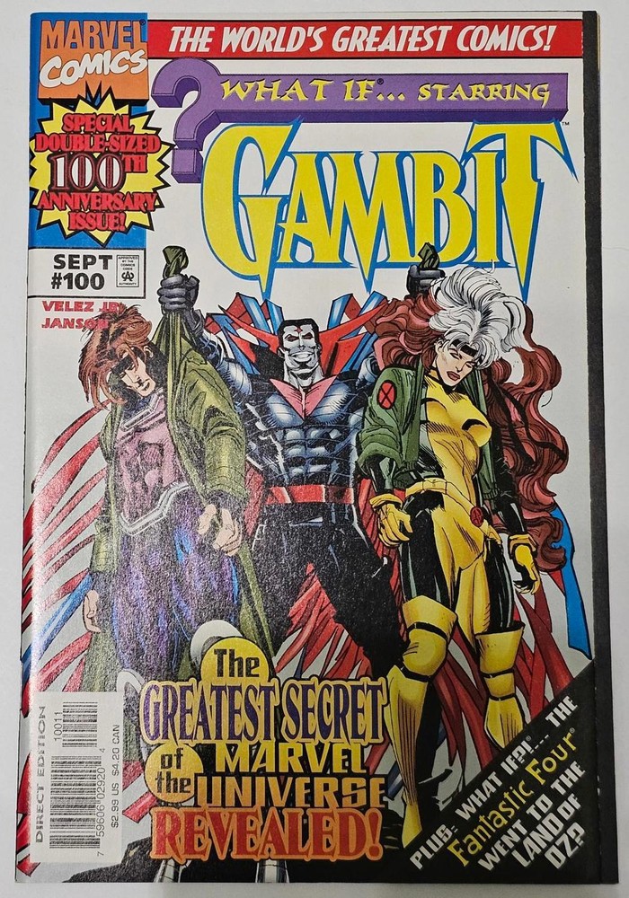 What If 100 Starring Gambit Vintage 1997 Marvel Comic Book. Double sized issue 'The Greatest Secret Of The Marvel Universe Revealed' with backup story 'What If The FF went to Oz'? Excellent like new condition. Check out the photos for condition details.