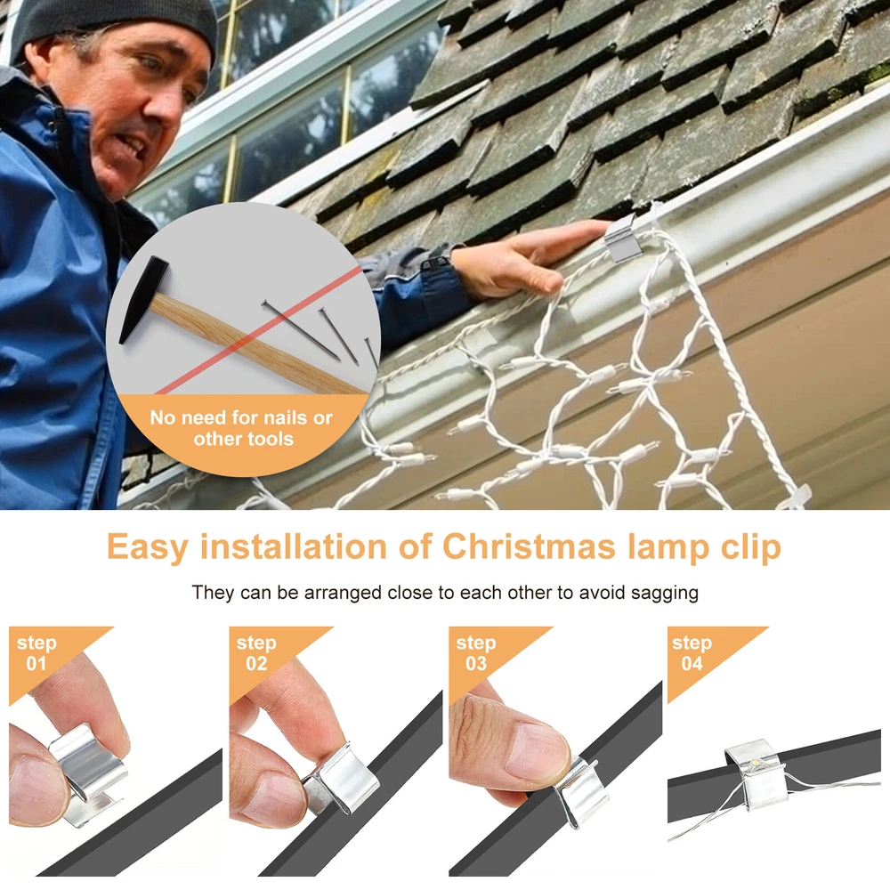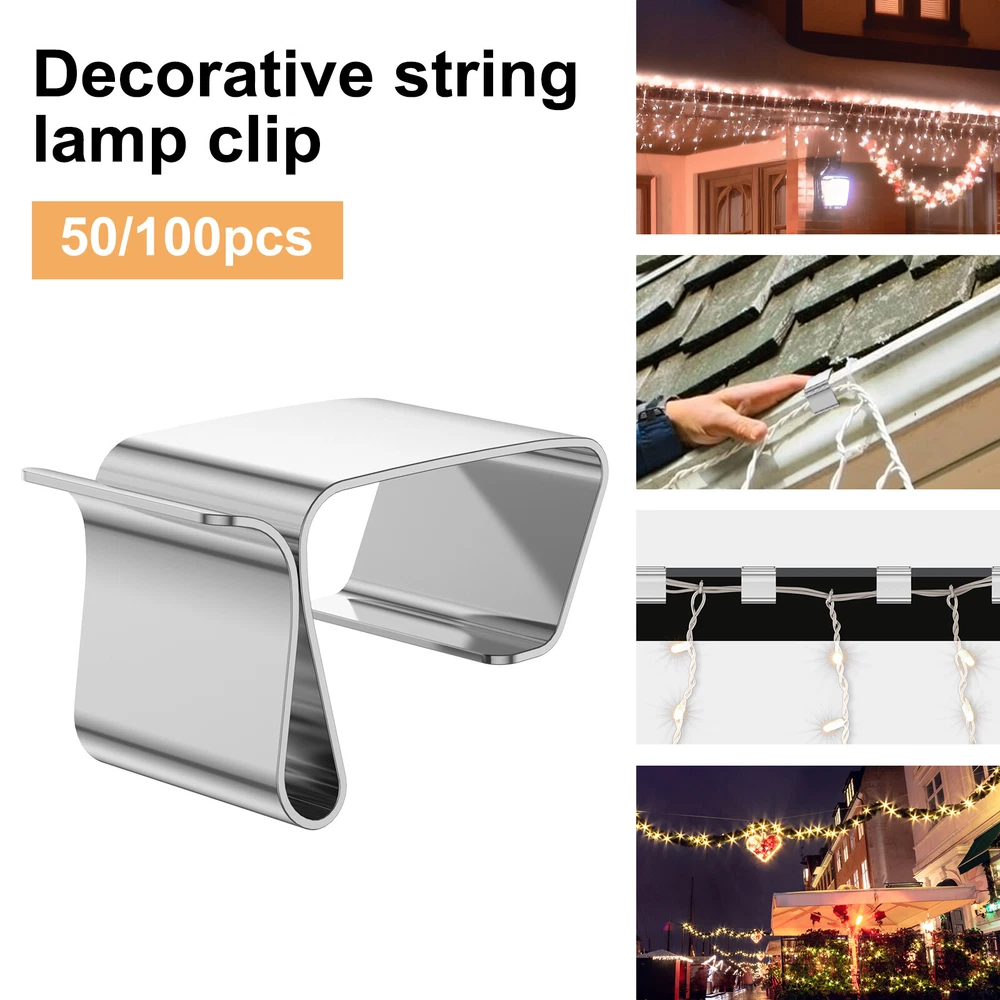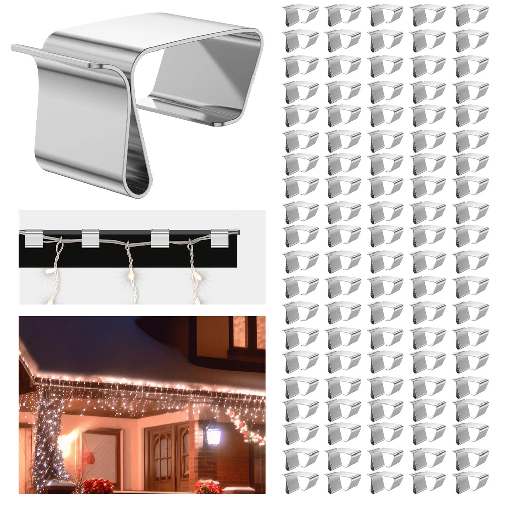 100 Gutter Hooks Outdoor Christmas Xmas Fairy Lights Metal Hanging Clamp
