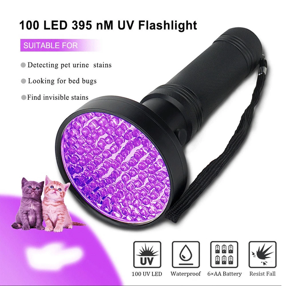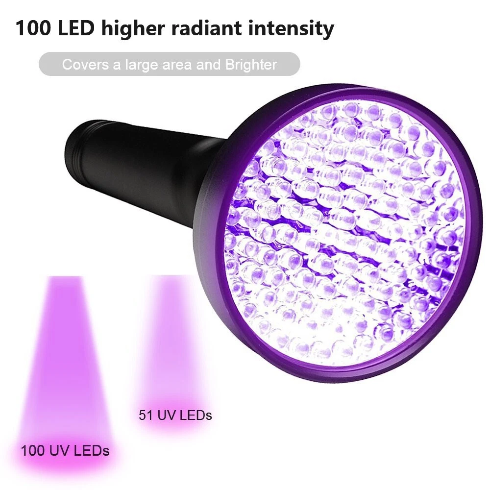 100 LED UV Ultraviolet Flashlight Blacklight 395nM Inspection Pet Urine Detector