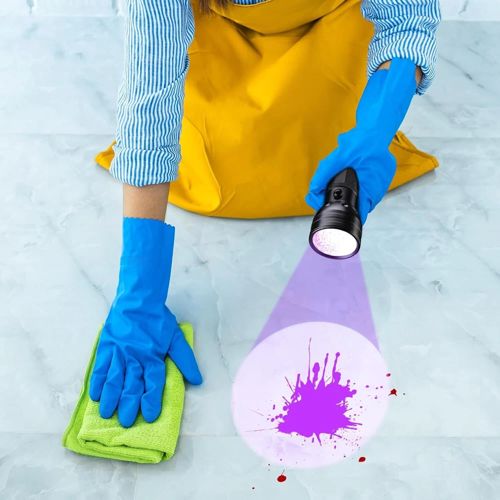 100 LED UV Ultraviolet Flashlight Blacklight 395nM Inspection Pet Urine Detector Ultra Violet Flashlight Features: ❤ COMPACT, HIGH QUALITY DESIGN - The strong Aluminum alloy body makes the uv light durable and long lasting, easy to heat dissipation. Anti slip surface design,reduce the danger of dropping. Daily waterproof level can longer the life of black light. 6x AA batteries provide longer time using. Two ways to using the strap,hand strap is easy to carry. Rope support will reduce the force. Best for home and outdoor camping. ❤ PET URINE & STAINS DETECTOR - Fubosi UV Black Light Flashlight can reveal pet urine and stains on carpets, rugs, floors, furniture, clothes while you couldn’t see with naked eyes. Because the Flashlight works by emitting long wave ultraviolet light to cause the salts in dried urine to shine and glow like neon sign, making them easily visible to human eyes. ❤ MULTIPURPOSE DETECTION - Great for other application to spot scorpions, minerals, vegetable caterpillars; Fluorescent Whitening Agent contained in Baby clothes or your cosmetics; Stain of kitchens,bathroom,hotel rooms; leak diagnostics, shine rock specimens, dry UV glue, gel nail fix, light up disc golf, authenticate currency, official identification cards, passports, jewelries, collections etc. ❤ LARGE COVERAGE & BRIGHTER - The Ultra Violet 100 LED Flashlight lights(Bulb Life: 100,000 Hrs ) in the head of the flashlight emit a powerful 395nm wavelength, which covers a large area without losing the intensity of the UV light, emits powerful long wave ultraviolet rays. Be strong enough that it can objects even 50 feet away! The UV light takes 6xAA batteries and large head with 100 LED makes this flashlight higher powered and brighter than others products. 100 Ultra Violet LED Flashlight Specification: Brand New and High Quality Type: Flashlight Material: ABS+Aluminum Alloy LED Quantity: 100pcs LED Power: 3W Irradiation Distance: 100m Lighting Time: 5-10hrs (depends on battery) Color: Black Size: 195mm x 78mm Power By: 6 x AA Battery Ni-MH (Included) Notes: 1.Due to the light and screen setting difference, the items color may be slightly different from the pictures. 2.Please allow slight dimension difference due to different manual measurement. Package Included: 1x Ultra Violet Flashlight 100 LED 6x 1.2v AA Ni-MH Rechargeable Batteries On Jan 26, 2025 at 22:35:03 PST, seller added the following information: