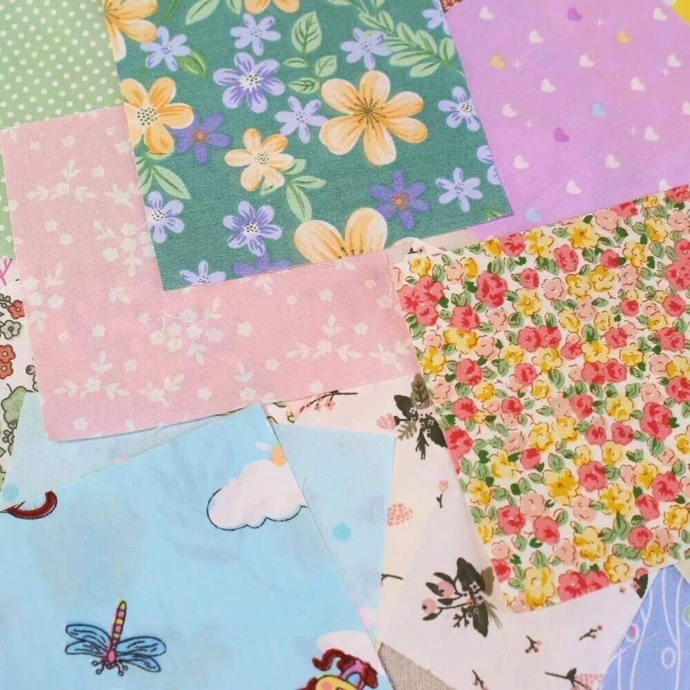 -100% brand new and good quality -Quantity: 100 pieces/set The package includes 100 different pieces squares fabric . Various/Mixed colours will vary on what is available at the time of order (images for illustration purposes only, colours and designs can not be guaranteed of the same per pack. -Size : 4inch squares ( maybe 1-3 mm error dut to due to manual cutting) -Color: 100 colors -Material: 100% cotton These fabrics are all 100% pure cotton and they are twill-woven.Its fabric structure is a twill weave with two threads going up and one thread going down, forming a 45° diagonal pattern on the left. It is not thick but very sturdy and durable, with excellent breathability and moisture absorption. It feels soft and not stiff when in contact with the skin. Suitable for : Crafting, Home Décor, Quilting, Sewing, doll ,handbag General, .......everything u want. Suit for sewing crafting, home decor, bag, quilting, table runner, pillow cover, sewing crafting decor, button covering,hair ties, hair clips,bear & toy making,badges,card making,blankets,Jam Jar covers and other things you want . We provide better service with cheap price.Don't hesitate to act. If you have any question ,please feel free to contact me