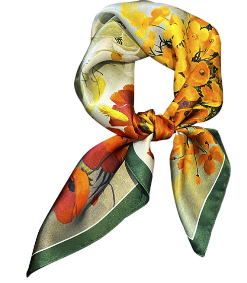 100% Mulberry Silk 26 Inch Floral Green Square Scarf for Women