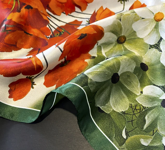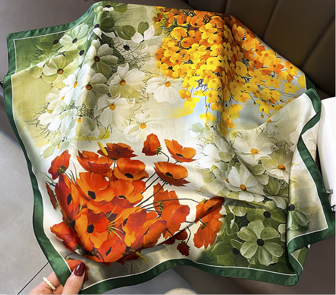 Shape: Square Color: Green gtin13: Does not apply Style: Scarf MPN: Does Not Apply UPC: Does not apply Department: Women Pattern: Floral Brand: shhgs Material: 100% Silk Fabric Type: Satin Season: Fall, Spring, Summer, Winter Type: Bandana/Square Scarf