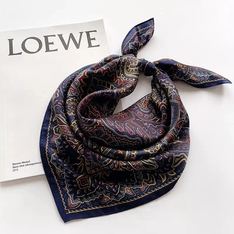 Item Width: 68cm Type: Scarf Vintage: Yes Style: Square Scarf Department: Women Material: Silk gtin13: Does not apply Theme: Art, Bohemian Character: 100% Mulberry Silk Color: Blue Season: Fall, Spring, Summer Accents: Printed Fabric Type: Satin Pattern: Paisley UPC: Does not apply Handmade: No Brand: Fireliebird Country/Region of Manufacture: China Features: Multifunctional, Neck Warmer Personalize: No