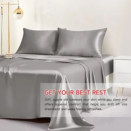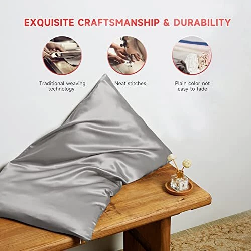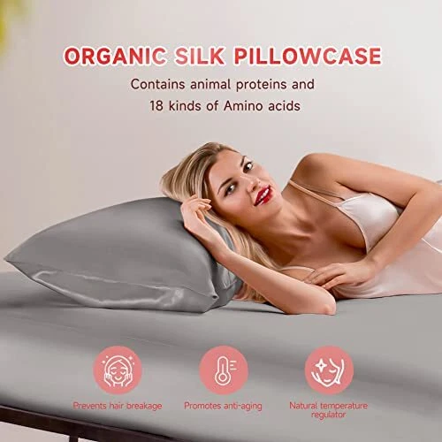 Return Policy Fast Delivery Trusted seller 100% Mulberry Silk Pillowcase for Hair and Skin, 22 Momme Natural Silk Pillow Cover with Hidden Zipper, Soft Breathable Smooth Organic Silk Pillowcase(Grey, Queen Size 20"x30") Product Description 22 MOMME PURE SILK: pillowcase is made of 100% long strand, Grade 6A+ Pure Mulberry Silk, which is smooth, soft and antistatic, maintains the balance of skin moisture. Compared with satin polyester, pure silk is a more organic fiber with relatively low carbon footprint, low soil and low land impact. It is composed of animal proteins and contains 18 kinds of Amino acids that are believed to effectively improve skin conditions. BENEFITS FOR HAIR, SKIN AND SLEEP: A natural silk pillowcase allows your hair and skin to glide effortlessly along the surface of your pillow. Less friction helps reduce hair breakage and promotes skin smooth. Comfortable and breathable, pure mulberry silk is also a natural temperature regulator, which helps maintaining the correct body temperature. It keeps you feel cool in summer and warm in winter. CONCEALED ZIPPER + DURABILITY: Concealed zipper design keeps the pillowcase seamless and uniform, prevents your pillow from moving around during the night and makes it easy to slip the pillow in and out for frustration-free washing. The pillowcase has exquisite craftsmanship of the neat stitches, and durable plain color which is not easy to fade after washing. GREAT GIFT CHOICE: Carefully wrapped in a gift package, the silk pillowcase is an ideal present to be given to your loved ones for any holidays as well as special occasions like weddings, bridal and baby showers, birthdays, anniversaries. etc. We offer a wide range of colors and sizes to fit your taste. WASHING INSTRUCTIONS: Hand-washing with cool water and dry clean are preferred. You can also put the pillowcase in a washing machine set to the gentle cycle, and we suggest to use a mesh wash bag when do so. Lay flat to dry. If you have any problem with the silk pillowcase, please feel free to contact us. Shipping Returns Payment Shipping Shipping is FREE to all addresses other than APO/PO boxes in the lower 48 states. All our stock ships from US-based warehouses. Shipped via USPS or UPS (depending on location and package weight) Unless stated otherwise, all orders will ship within 24-72 hours of your payment being processed. Check our feedback to see the great reviews of FAST shipping we offer. Returns Seller does not accept returns Payment We currently accept payment via eBay managed payments only. Once payment is cleared, we will dispatch your shipment within 1-3 business days. Please refer to the "Shipping" tab for more information regarding shipping speed to your destination.
