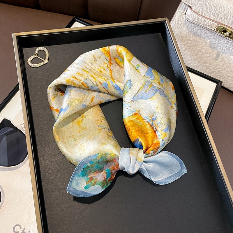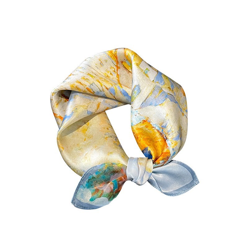 $ 5.57Double-Sided 100% Mulberry Silk Scarf Blue Geometric Headscarf 150x15cm Women