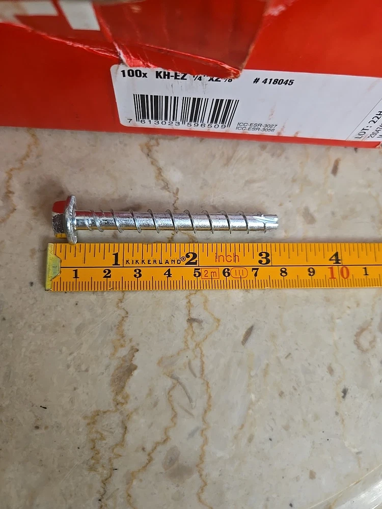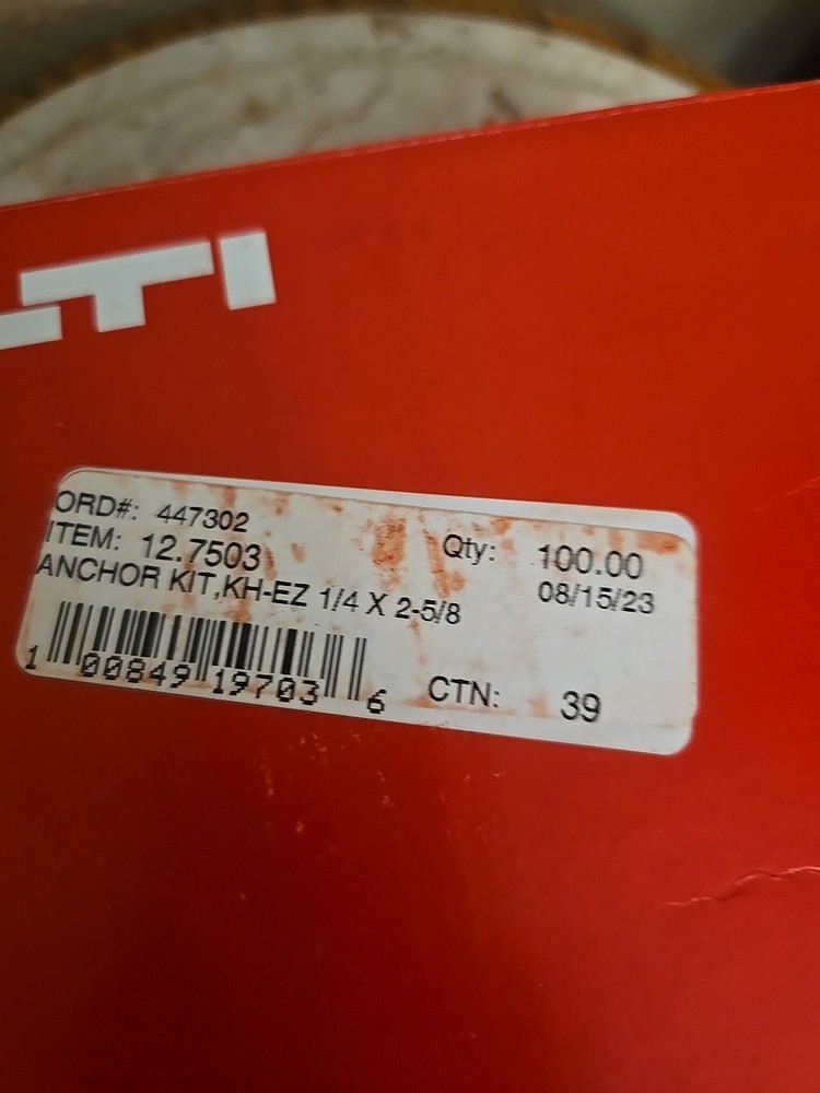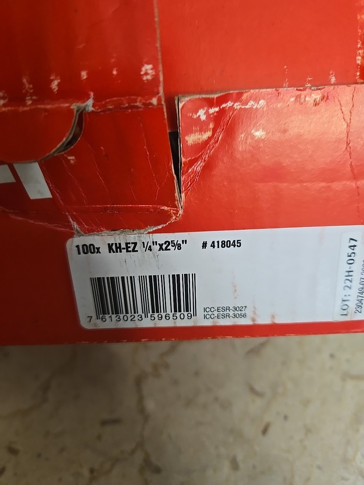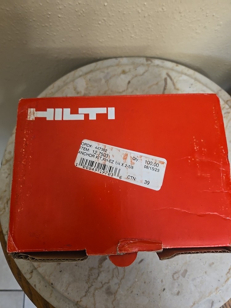 100 NEW HILTI KH-EZ 1/4" X 2 5/8” Concrete Hex Head Screw Anchors Box 418045.