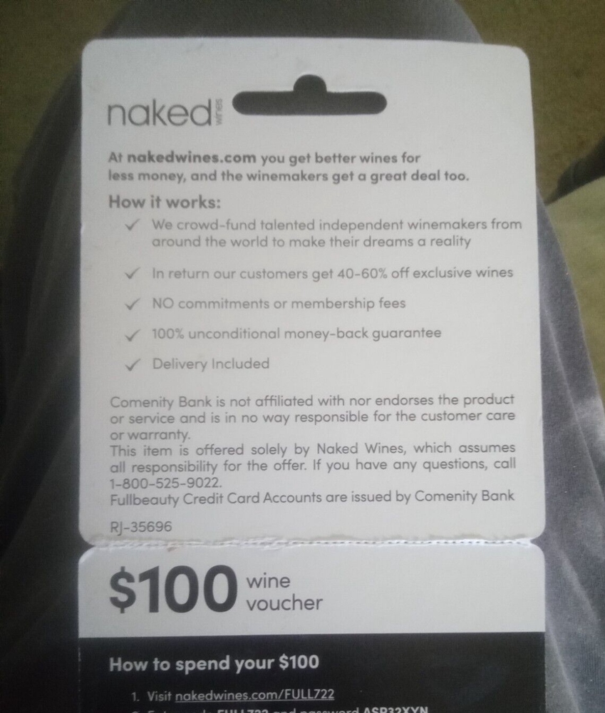 Brand:NakedwinesExpiration Year:No ExpirationSeller Notes:“Just given to me April 2023. Unused”Type:Food & BeverageExpiration Month:No ExpirationValue (Dollars):100