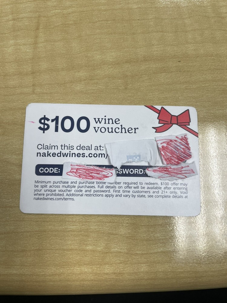 $100 Wine Voucher / Gift Card Nakedwines.com. Shipped with USPS Ground Advantage.
