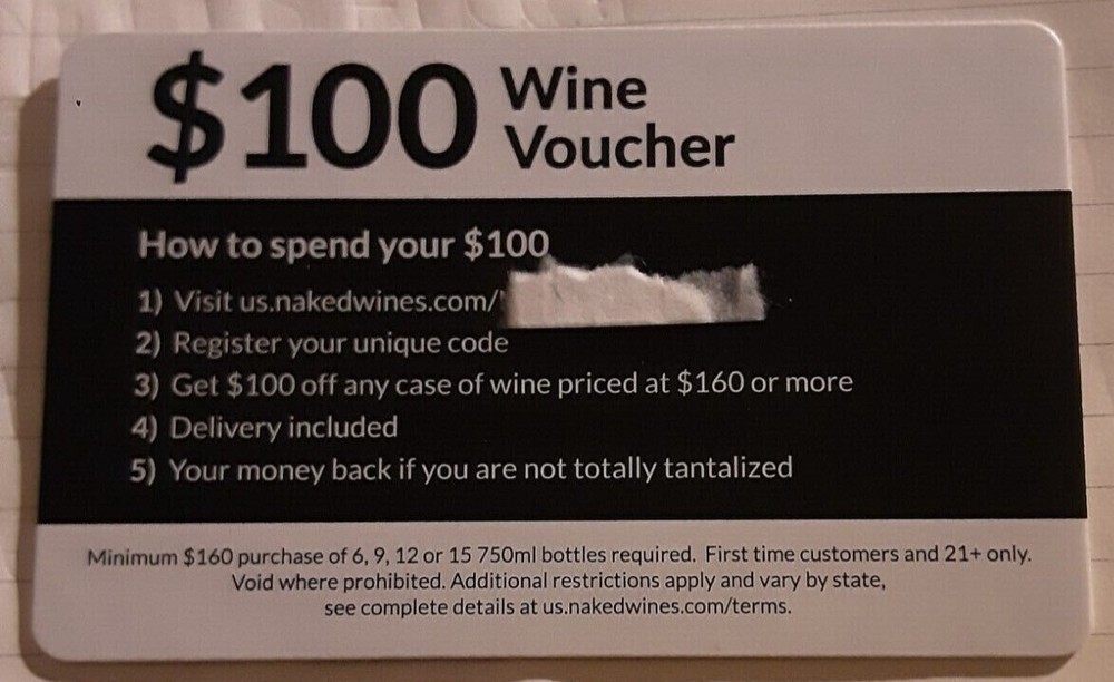 New $100 nakedwines.com Wine Voucher Gift Card.