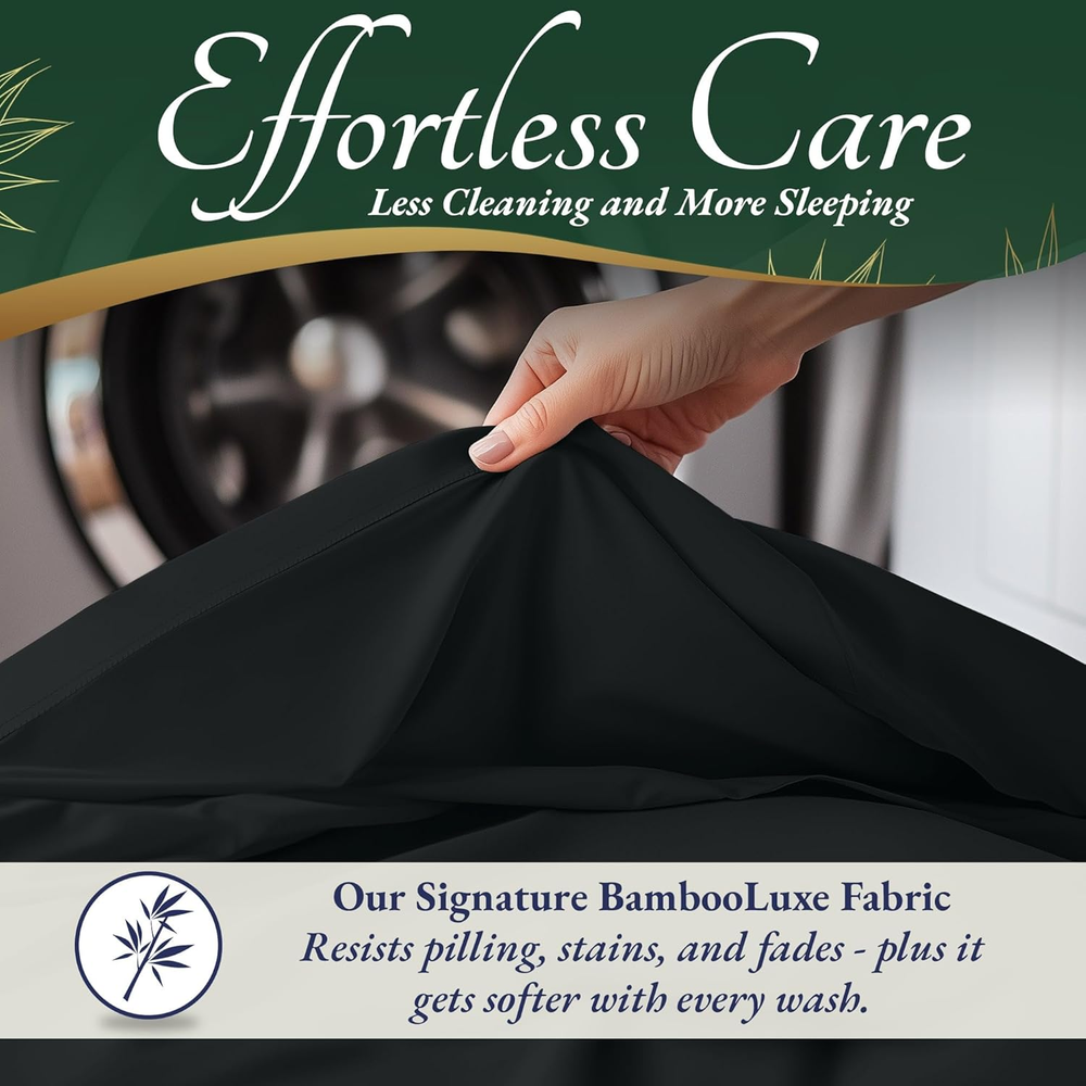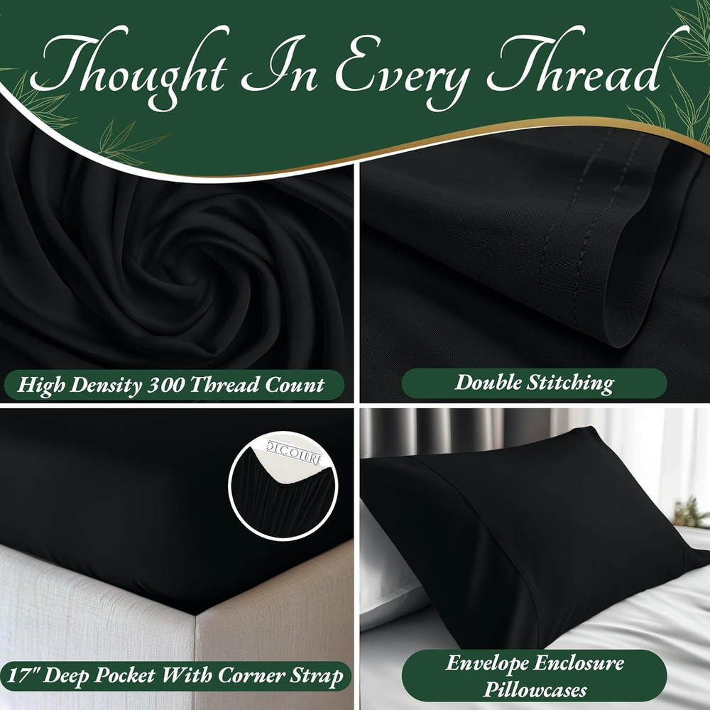 Store New Arrivals Add to Favorite View Feedback Contact 100% Organic Viscose Derived from Bamboo Sheets King Size 6Pcs - Ultra Soft & Luxuriously Cooling, 17" Deep Pocket, Double Stitching, Perfect for Hot Sleepers - King Bed Sheets (Black) Description Style Modern Pillowcase Width 20.5 Inches Weave Type Sateen Pattern Solid Country of Origin China Theme Holiday Number of Pieces 6 Unit Count 1.0 Count Pillowcase Quantity 4 Material viscose derived from bamboo Age Range (Description) Adult Seasons All, Summer, Fall, Spring Package Dimensions 11.26 x 11.22 x 4.13 inches Closure Type Envelope Item Weight 7.59 pounds Pillowcase Length 40 Inches Occasion Mother’s Day, New Year’s, Housewarming, Anniversary, Birthday Fitted Sheet Pocket Depth 17 Inches Special Feature Temperature Regulation, Fade Resistant, Hypoallergenic, Deep Pocket, Wrinkle Resistant Color Black Thread Count 300 Pillowcase Closure Depth 8 Inches Included Components Pillowcase, Fitted Sheet, Flat Sheet Pillowcase Closure Width 20.5 Inches Size King UNMATCHED COMFORT & SOFTNESS: Our unique 100% viscose derived from bamboo sheets king size deliver an unparalleled softness and a smooth, luxurious texture. OEKO-Tex Certified viscose derived from bamboo bed sheets are silky-smooth & naturally hypoallergenic SLEEP IN COOLING BLISS: Elevate your sleep with viscose derived from bamboo cooling sheets. Naturally temperature regulating bed sheet set, moisture-wicking, and innovative Breezweave technology for breathability. Luxury sheets for ultimate relaxation BUILT TO LAST: Our king sheets set is made from 100% viscose derived from bamboo that withstands longer wash cycles and is fade-resistant. Precise double stitching on sheets provides lasting durability and exceptional strength PERFECT FIT FOR All BEDS-6-PIECE SET: Discover the ultimate fit with our king size sheets set tailored for standard mattress dimensions, with a deep 17" pocket for extra-thick mattresses. Package Includes 1pcs Flat Sheet (108x102) inch, 1pcs Fitted Sheet (78x80) inch, 4pcs Pillow Cases (20x40) inch AFFORDABLE LUXURY & DURABILITY: DECOLURE Bed Sheets are made from high-grade viscose derived from bamboo, offering a smooth, wrinkle-free surface with exceptional softness; enjoy lasting quality and luxury without compromising on durability Product Description POPULAR DECOLURE BEDDING SHEETS SETS Add to Cart Add to Cart Add to Cart Add to Cart Add to Cart Customer Reviews 4.5 out of 5 stars 961 4.5 out of 5 stars 3,896 4.3 out of 5 stars 15,714 4.3 out of 5 stars 861 4.1 out of 5 stars 934 Price $69.99 $ 69 . 99 $69.99 $ 69 . 99 $29.95 $ 29 . 95 $33.95 $ 33 . 95 $37.95 $ 37 . 95 MATERIAL 100% Viscose from Bamboo 100% Viscose from Bamboo 100% Satin 100% Satin Bamboo Microfiber MACHINE WASHABLE ✔ ✔ ✔ ✔ ✔ WRINKLE & STAIN RESISTANT ✔ ✔ ✔ ✔ ✔ ADDITIONAL BENEFIT Cooling Cooling Great for Hair & Skin Great for Hair & Skin Cooling PILLOWCASE COUNT 4 2 2 4 2 EXTRA DEEP POCKET 17 inches 17 inches 15 inches 15 inches 14 inches NUMBER OF COLORS 15+ 15+ 25+ 15+ 10+ OEKO TEX CERTIFIED ✔ ✔ ✔ ✔ ✔ ABOUT US We offer the best prices around on high quality products. Our E-store includes media such as books, movies, music and games while offering electronics, toys, sporting apparel, clothing, tools, general home, garden items and more. SHIPPING We are always working hard to ensure your package arrives as soon as possible. Please understand that some factors like weather, high postal traffic, and the performance of shipping companies are outside of our control. We offer free shipping to the lower 48 states and ship within 2 business days of payment, usually sooner. We do not accept P.O. Boxes. Please provide a physical address. For shipping outside of the continental USA, we only use eBay's Global Shipping Program.The item is shipped to KY and then sent to the rest of the world. International customers are responsible for all duties and taxes. Continue to check out in order to calculate costs for shipping the item to your country. Messages regarding eBay's Global Shipping Program MUST be directed at eBay EXCLUSIVELY. RETURNS We offer a 30-Day Return Policy on items which you are not completely satisfied with. You have the option for a full-refund or an exchange of the item. No returns are available on items shipped outside of the USA. PAYMENT We accept PayPal. CONTACT US This page content is yet to come Please ad us to your favorite seller and visit again later Thank You CUSTOMER SATISFACTION We try our very best to make sure every customer is completely satisfied. If there's a problem, message us! We're happy to help.