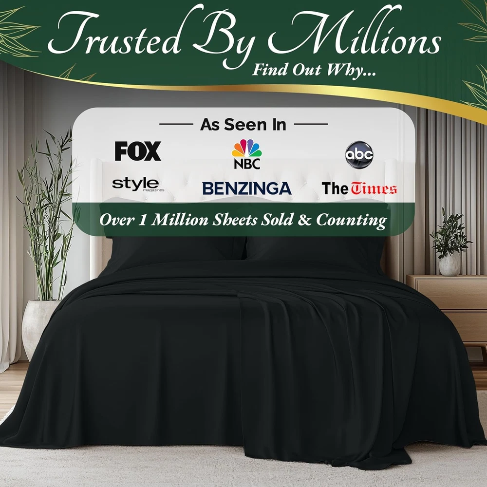 Rayon from Bamboo Sheets Queen Size Bed Luxury Silk Cooling Bedsheets with Snug