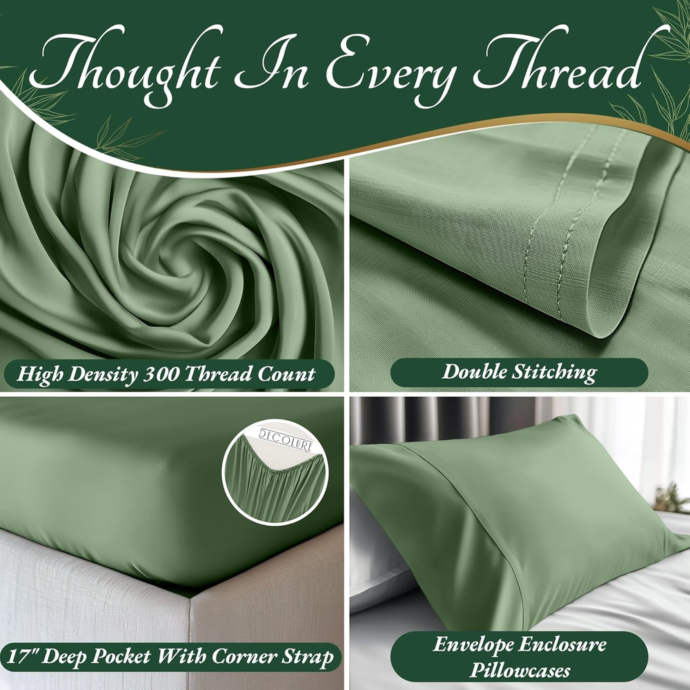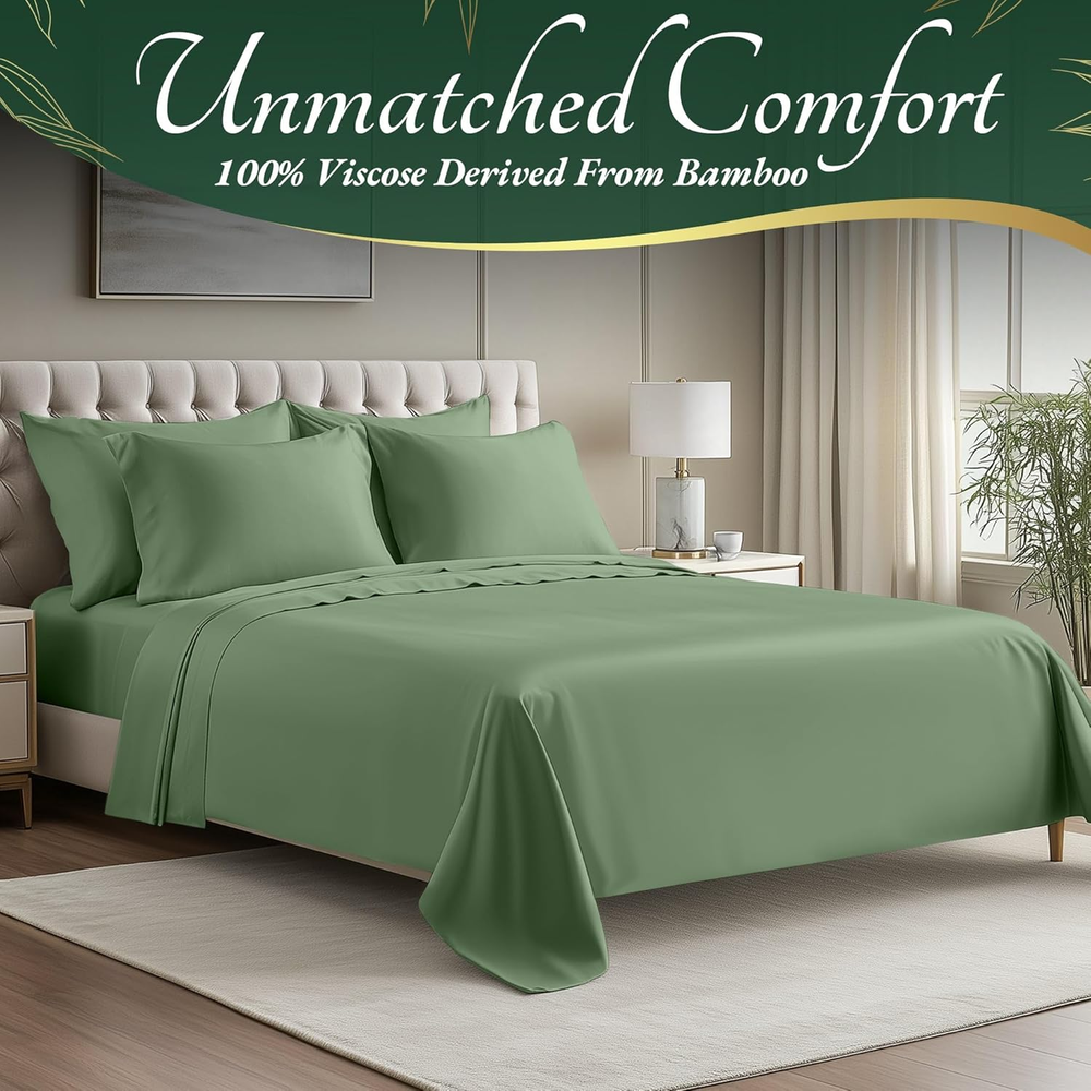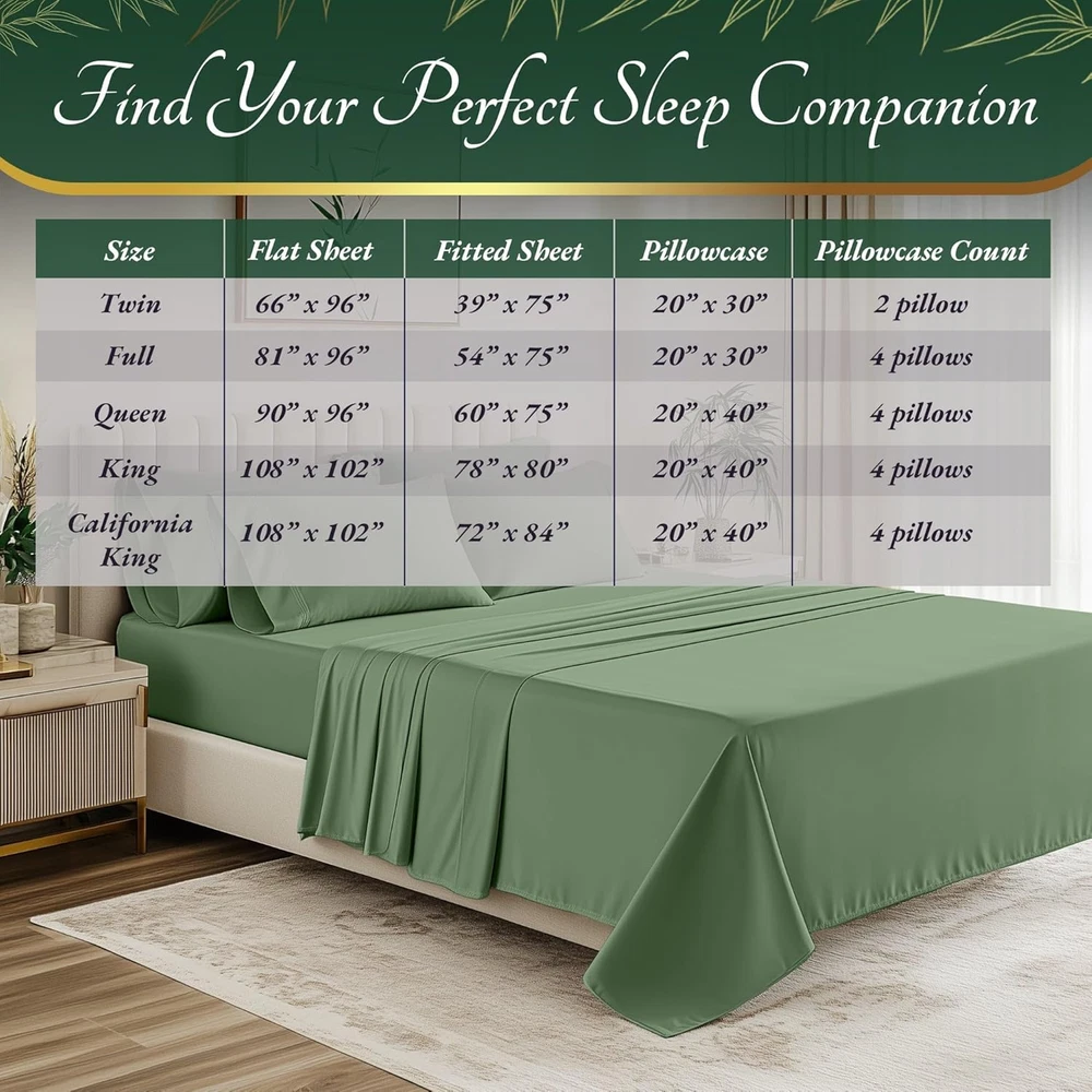 Store New Arrivals Add to Favorite View Feedback Contact 100% Organic Viscose Derived from Bamboo Sheets Queen Size 6Pcs - Ultra Soft & Luxuriously Cooling, 17" Deep Pocket, Double Stitching, Perfect for Hot Sleepers - Queen Bed Sheets (Sage Green) Description Style Modern Pillowcase Width 20.5 Inches Weave Type Sateen Pattern Solid Country of Origin China Theme Holiday Number of Pieces 6 Unit Count 1.0 Count Pillowcase Quantity 4 Material viscose derived from bamboo Age Range (Description) Adult Seasons All, Summer, Fall, Spring Package Dimensions 11.26 x 11.22 x 3.58 inches Closure Type Envelope Item Weight 6.05 pounds Pillowcase Length 30 Inches Occasion Mother’s Day, New Year’s, Housewarming, Anniversary, Birthday Fitted Sheet Pocket Depth 17 Inches Special Feature Temperature Regulation, Fade Resistant, Hypoallergenic, Deep Pocket, Wrinkle Resistant Color Sage Green Thread Count 300 Pillowcase Closure Depth 8 Inches Included Components Pillowcase, Fitted Sheet, Flat Sheet Pillowcase Closure Width 20.5 Inches Size Queen UNMATCHED COMFORT & SOFTNESS: Our unique 100% viscose derived from bamboo sheets queen size deliver an unparalleled softness and a smooth, luxurious texture. OEKO-Tex Certified viscose derived from bamboo bed sheets are silky-smooth & naturally hypoallergenic SLEEP IN COOLING BLISS: Elevate your sleep with viscose derived from bamboo cooling sheets. Naturally temperature regulating bed sheet set, moisture-wicking, and innovative Breezweave technology for breathability. Luxury sheets for ultimate relaxation BUILT TO LAST: Our Queen sheets set is made from 100% viscose derived from bamboo that withstands longer wash cycles and is fade-resistant. Precise double stitching on sheets provides lasting durability and exceptional strength PERFECT FIT FOR All BEDS-6-PIECE SET: Discover the ultimate fit with our Queen size sheets set tailored for standard mattress dimensions, with a deep 17" pocket for extra-thick mattresses. Package Includes 1pcs Flat Sheet (90x102) inch, 1pcs Fitted Sheet (60x80) inch, 4pcs Pillow Cases (20x40) inch AFFORDABLE LUXURY & DURABILITY: DECOLURE Bed Sheets are made from high-grade viscose derived from bamboo, offering a smooth, wrinkle-free surface with exceptional softness; enjoy lasting quality and luxury without compromising on durability Product Description POPULAR DECOLURE BEDDING SHEETS SETS Add to Cart Add to Cart Add to Cart Add to Cart Customer Reviews 4.5 out of 5 stars 961 4.5 out of 5 stars 3,896 4.1 out of 5 stars 934 4.3 out of 5 stars 15,714 4.3 out of 5 stars 861 Price $69.99 $ 69 . 99 $69.99 $ 69 . 99 — $31.95 $ 31 . 95 $31.95 $ 31 . 95 MATERIAL 100% Viscose from Bamboo 100% Viscose from Bamboo Bamboo Microfiber 100% Satin 100% Satin MACHINE WASHABLE ✔ ✔ ✔ ✔ ✔ WRINKLE & STAIN RESISTANT ✔ ✔ ✔ ✔ ✔ ADDITIONAL BENEFIT Cooling Cooling Cooling Great for Hair & Skin Great for Hair & Skin PILLOWCASE COUNT 4 2 2 2 4 EXTRA DEEP POCKET 17 inches 17 inches 14 inches 15 inches 15 inches NUMBER OF COLORS 15+ 15+ 10+ 25+ 15+ OEKO TEX CERTIFIED ✔ ✔ ✔ ✔ ✔ ABOUT US We offer the best prices around on high quality products. Our E-store includes media such as books, movies, music and games while offering electronics, toys, sporting apparel, clothing, tools, general home, garden items and more. SHIPPING We are always working hard to ensure your package arrives as soon as possible. Please understand that some factors like weather, high postal traffic, and the performance of shipping companies are outside of our control. We offer free shipping to the lower 48 states and ship within 2 business days of payment, usually sooner. We do not accept P.O. Boxes. Please provide a physical address. For shipping outside of the continental USA, we only use eBay's Global Shipping Program.The item is shipped to KY and then sent to the rest of the world. International customers are responsible for all duties and taxes. Continue to check out in order to calculate costs for shipping the item to your country. Messages regarding eBay's Global Shipping Program MUST be directed at eBay EXCLUSIVELY. RETURNS We offer a 30-Day Return Policy on items which you are not completely satisfied with. You have the option for a full-refund or an exchange of the item. No returns are available on items shipped outside of the USA. PAYMENT We accept PayPal. CONTACT US This page content is yet to come Please ad us to your favorite seller and visit again later Thank You CUSTOMER SATISFACTION We try our very best to make sure every customer is completely satisfied. If there's a problem, message us! We're happy to help.