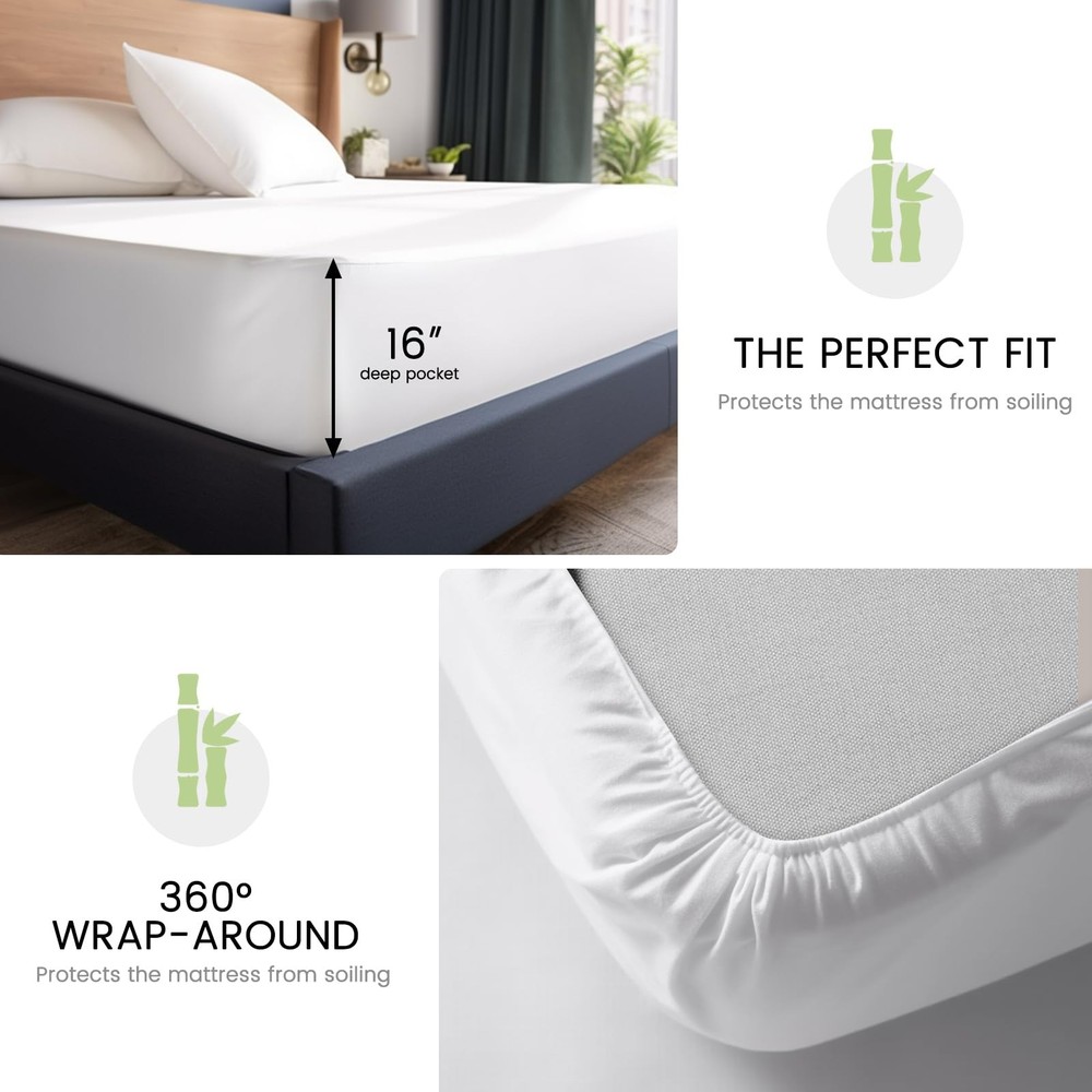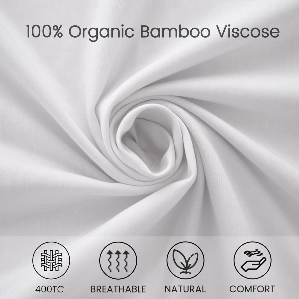 Experience the perfect combination of luxury and comfort with the Bamboo Sheet Set that will bring a whole new level of enjoyment to your sleep. Made of 100% natural bamboo viscose, this bamboo sheet set is not only soft and silky, but also breathable and moisture-absorbent, allowing hot sleepers to enjoy a dry sleep environment every night. In addition, the eco-friendly properties of bamboo fiber make it an ideal choice for sustainable development, helping you do your part for the planet. Exquisite craftsmanship and stylish design make this sheet set not only practical, but also a beautiful piece of home décor. Whether it's for yourself or as a gift for your friends and family, the Bamboo Fiber Sheet Set will be a smart choice. Choose it to make every night full of warmth and serenity and enjoy a cloud-like sleeping experience. [100% ORGANIC BAMBOO VISCOSE]: Bamboo viscose luxury bed sheets are crafted from the finest 100% organic bamboo viscose, OEKO-TEX Standard 100 certified, and tested for over 100 harmful substances and softer than Egyptian cotton sheets [COMPLETE 4-PIECE]: Includes 1 fitted sheet(60”x80”+16”pocket) 1 flat sheet(90”x102”) and 2 envelope-style pillowcases with overlapping closure(20”x30”+2”). Choose from five elegant and luxurious colors: sophisticated light gray, timeless white, opulent navy blue, sleek dark gray, or warm cream [LUXURY BEDDING]: The bamboo viscose bed sheet set is designed to fit nearly all mattresses with a depth that does not exceed 16", is machine washable, and is wrinkle-free. Superior moisture-wicking and thermoregulation properties to keep you cool in summer and warm in winter [BREATHABLE COMFORT]: Naturally thermo-regulating to keep you cool and relaxed while sleeping and providing all season comfort. Bamboo viscose bedding is made from 400 thread count sateen weave fabric for a softer, smoother and more silky feel [GENTLE WASH]: Machine washable on gentle cycle, tumble dry low, and do not iron. And this sheet set is finished with fine stitching to ensure a good level of comfort to last for years. To avoid wrinkles, put your sheets on your bed right after you pull them out from the dryer. If you have any questions during use, please contact us without hesitation