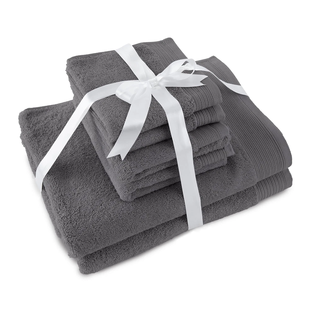100% Organic Cotton Luxury 6-Piece Towel Set, Charcoal Sky