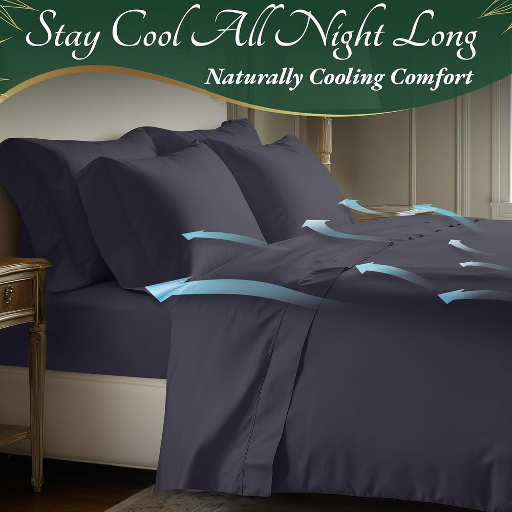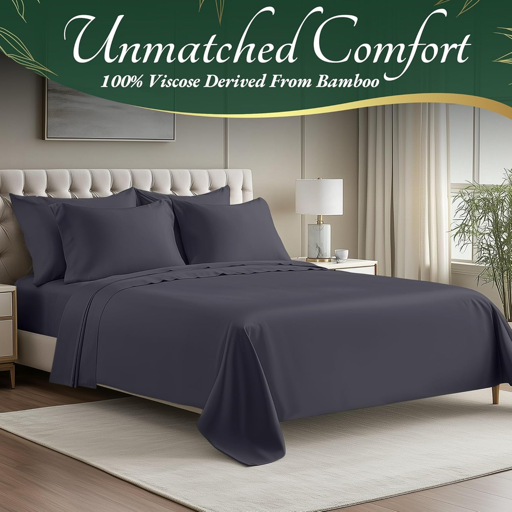 100% Organic Viscose Derived from Bamboo Sheets Queen Size 6Pcs - Ultra Soft & L