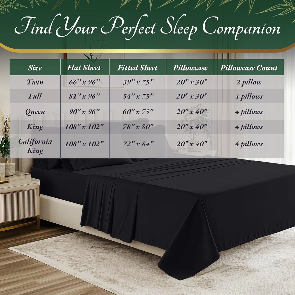 $ 52.8100% Organic Bamboo Viscose King Size Sheet Set 6Pcs - Ultra Soft Luxurious