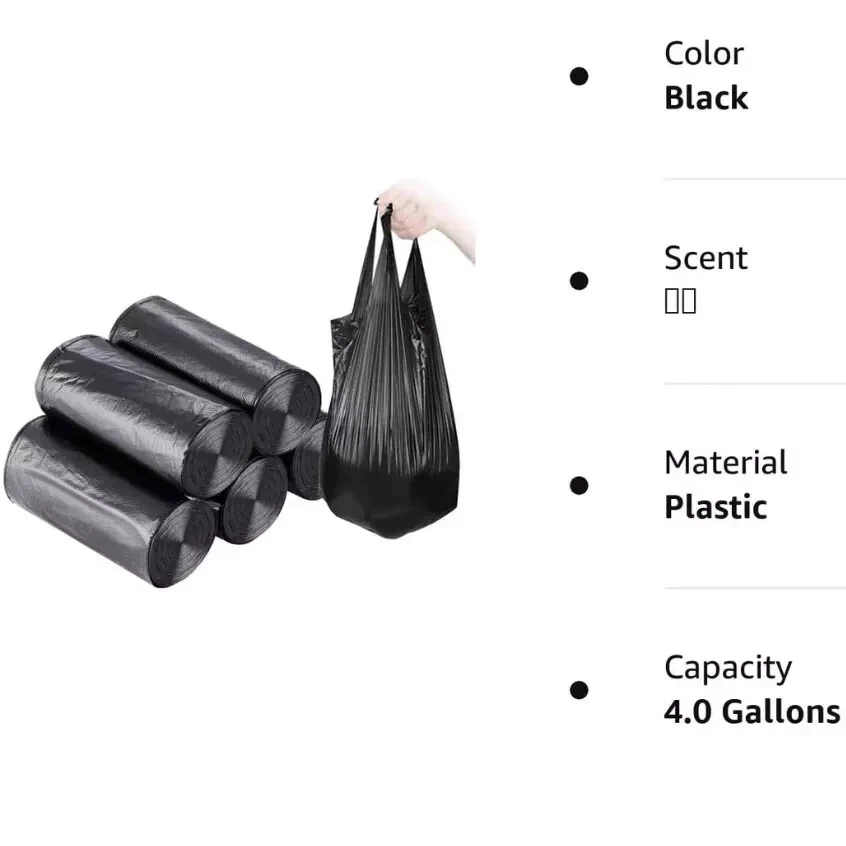 100 PCS 4-Gallon Trash Bags β Small Garbage Bags, 5 Rolls, Durable & Leak-Proof Strong, Reliable & Convenient Trash Bags for Everyday Use Upgrade your waste disposal with these 100 PCS 4-Gallon Trash Bags , designed for kitchens, bathrooms, offices, and more . Made from high-quality, leak-proof plastic , these small garbage bags offer superior durability, puncture resistance, and built-in handles for easy carrying . Perfect for daily household use, recycling, and lightweight trash collection . β¨ Key Features & Benefits: β’ πͺ Strong & Durable β Tear-resistant plastic supports up to 11 lbs (5 kg) without breaking . β’ π― Built-in Handles β Easy to lift, tie, and carry while keeping hands clean. β’ π± High-Quality Materials β Made from pure, odor-free plastic for a more eco-friendly option . β’ π Perfect Size β 4-gallon capacity (46x60cm / 18.11x23.62 inches) with excellent puncture & tear resistance . β’ π‘ Multi-Purpose Use β Ideal for kitchens, bathrooms, bedrooms, living rooms, offices, and recycling bins . π¦ Package Includes: β 100 PCS Small Trash Bags (5 Rolls, 4-Gallon Capacity Each) β Leak-Proof, Tear-Resistant & Built-in Handles for Easy Use Why Choose These Small Garbage Bags? β Durable, strong, and reliable for daily trash disposal β Convenient handles for effortless carrying & tying β Perfect for home, office, kitchen, and bathroom waste management β Clear black design for a clean and refined look π Order Now and enjoy leak-proof, strong, and easy-to-use 4-gallon trash bagsβ perfect for all your waste disposal needs!