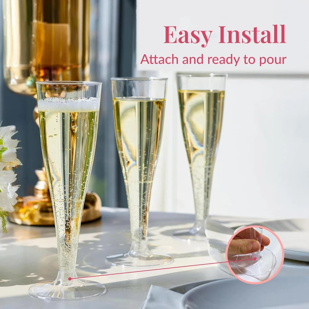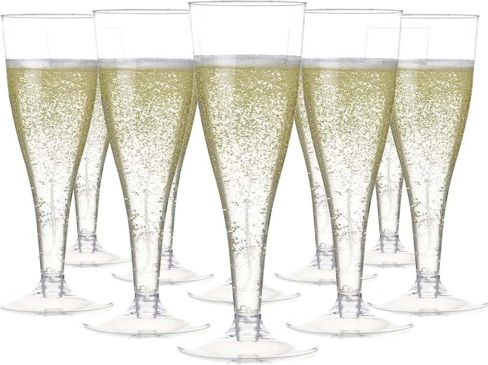 Store New Arrivals Add to Favorite View Feedback 100 Pack Clear Plastic Champagne Flutes - 4.5 Oz Durable Disposable Champagne Glasses for Parties, Weddings, Toasting and Large Celebrations - Elegant Wine Glasses Stemware for Easy Cleanup Description Reusability Disposable Unit Count 100 Count Style Clear (100 Pack) Customer Package Type standard packaging Material Plastic Capacity 133 Milliliters Color Clear Pattern Solid Global Trade Identification Number 00850075387175 Item Weight 2.97 pounds Theme wedding Size 100 Count (Pack of 1) Material Feature Disposable Age Range (Description) Adult Recommended Uses For Product Home, Party Shape Flute Material Type Free BPA Free Special Feature Bpa Free Product Dimensions 4"W x 8"H Product Care Instructions Hand Wash Only Number of Items 100 Elegant Design for Every Occasion: Sip in style with these plastic champagne glasses; ideal for casual gatherings, formal events, or weddings; their sophisticated look adds elegance to any setting Versatile Use: These plastic wine glassess are ideal for serving beverages at parties, nightclubs, or toasting at weddings; suitable from mimosas and cocktails to creative sundaes and desserts Ergonomic Comfort: Designed for easy grip, these toasting glasses disposable offer comfort while enjoying drinks like Bloody Marys, cocktails, mocktails, and mixed beverages; enjoy a stylish toast Easy Push and Twist Assembly: Just push and twist the base into the stem for quick setup, these clear plastic champagne flutes are durable, reusable, and perfect for effortless cleanup after any event Large Bulk Supply: Each pack includes 100 champagne flutes disposable with a 4.5 oz capacity, ensuring you have plenty of supplies for big celebrations, engagements, weddings, or parties Product description ABOUT US We offer the best prices around on high quality products. Our E-store includes media such as books, movies, music and games while offering electronics, toys, sporting apparel, clothing, tools, general home, garden items and more. SHIPPING We are always working hard to ensure your package arrives as soon as possible. Please understand that some factors like weather, high postal traffic, and the performance of shipping companies are outside of our control. We offer free shipping to the lower 48 states and ship within 2 business days of payment, usually sooner. We do not accept P.O. Boxes. Please provide a physical address. RETURNS We offer a 30-Day Return Policy on items which you are not completely satisfied with. You have the option for a full-refund or an exchange of the item. No returns are available on items shipped outside of the USA. PAYMENT We accept PayPal. CONTACT US This page content is yet to come Please ad us to your favorite seller and visit again later Thank You