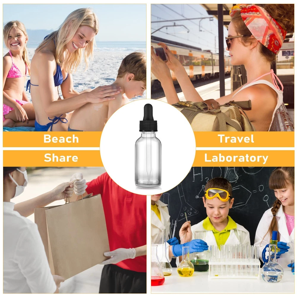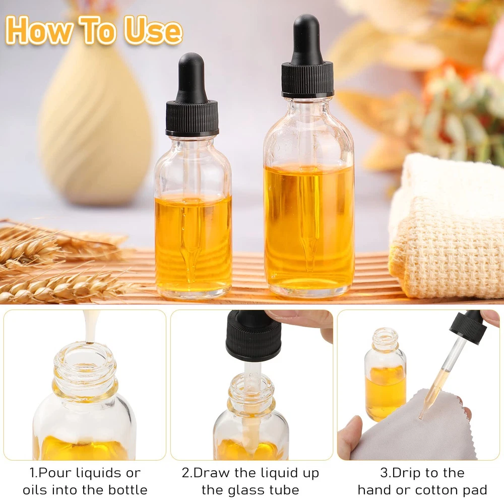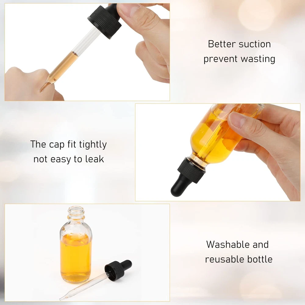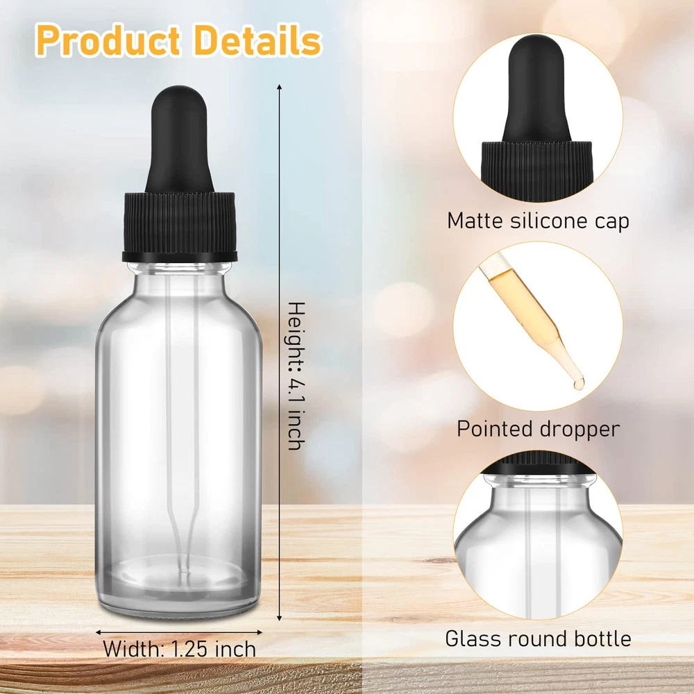 100 Pcs Glass Eye Dropper Bottles 1 Oz Leakproof Tincture Bottle Bulk 30ml Glass Bottles Glass Dropper Bottles Empty for Essential Oils Perfumes Lab Feature: Safe material: Our 1 oz dropper bottles are made of corrosion resistant glass, no BPA, quality and reusable which is your good choice. They are lightweight and portable, you can carry fluids with you for your daily eye, face and body care. Convenient to carry: The diameter is of glass tincture bottles with dropper is 1.25 inch, the height with dropper is 4.1 inch, easy to put in makeup bag and carry around. It has a capacity of 30ml, suitable for storing small amounts of liquid and easy access. And they are detachable and reusable, they can be cleaned in warm soapy water. Basic information: Quantity: 100 Material: glass Color: clear Size: approx. 4.1 inch in height, 1.25 inch in diameter Package include: 100 x Dropper glass bottle Notes: Manual measurement,there may be slight differences in size. Due to the screen display, the color of the item may differ slightly from the picture. Sufficient Quantity: you will receive 100 pcs glass bottles with droppers,each with tapered glass droppers, they are well packaged in the box to prevent breakage during shipping, and sufficient quantity allows you to effectively organize and store all your essentials Quality Material: these clear eye dropper bottle are made of strong and thick glass, black plastic lids and corrosion resistant silicone tops, never absorb the flavors, offer a long time use; Safely and perfectly guard your essential oils and perfume from damaging UV rays and risk of rapid evaporation Good Tightness: the glass tincture bottle mouth and the hat fit tightly, not easy to leak if you tighten the hat down well. Besides, the bottles come with better suction, efficiently draws the liquid up the glass tube, prevent wasting Practical and Large Quantity: the tincture eye dropper bottles keep the liquid inside the bottle clean, and it can be sealed by rotating, which is convenient and fast. 100 pieces can also meet the diverse needs and replacement of your life, share them with your friend and family Broad Range of Applications: the eye droppers for essential oil bottles can be applied to store essential oils, moisturizing water, perfumes, lab, pharmaceuticals, beard oil, hair oil tinctures, herbal remedies and other liquid or apothecary products; Can also be applied for massage, hair salon, aromatherapy, enjoy your relaxing moments