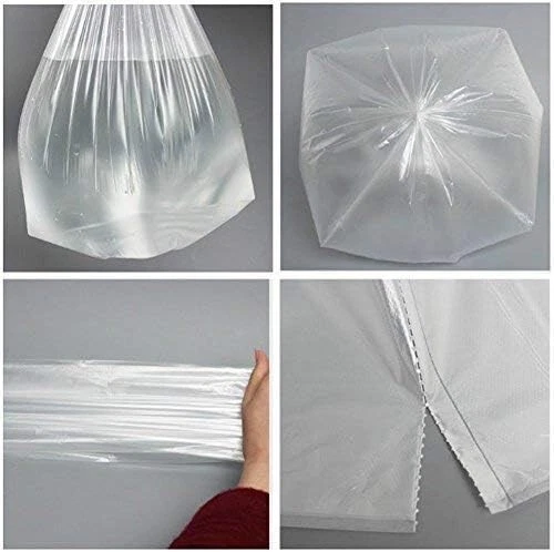 About this item Size:18.5"L x 17.7"W, clear, 100 counts, 2 rolls(50 counts/ roll), non-scent Apply for diameter of can≤11" and depth≤15.5" Garbage bags are easy to lift and carry,and made of High-quality raw materials PE, no smell, no breakable, more durable, more environmentally friendly These trash bags are suitable for use in kitchen,bathroom, bedroom, living room, office, baby diaper waste and cleaning pet's litter Ideal for lightweight trash where a heavy duty bag is unnecessary
