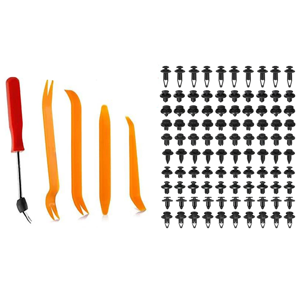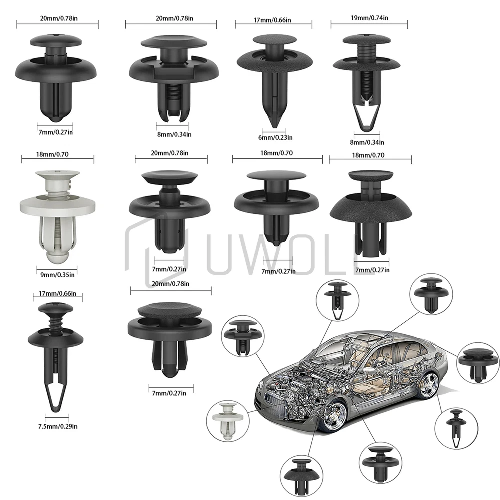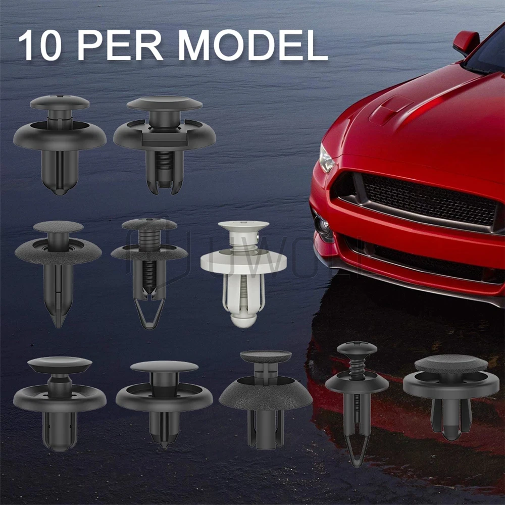 100 Pcs Car Retainer Auto Fasteners Push Trim Plastic Clips Pin Rivet Bumper Kit
