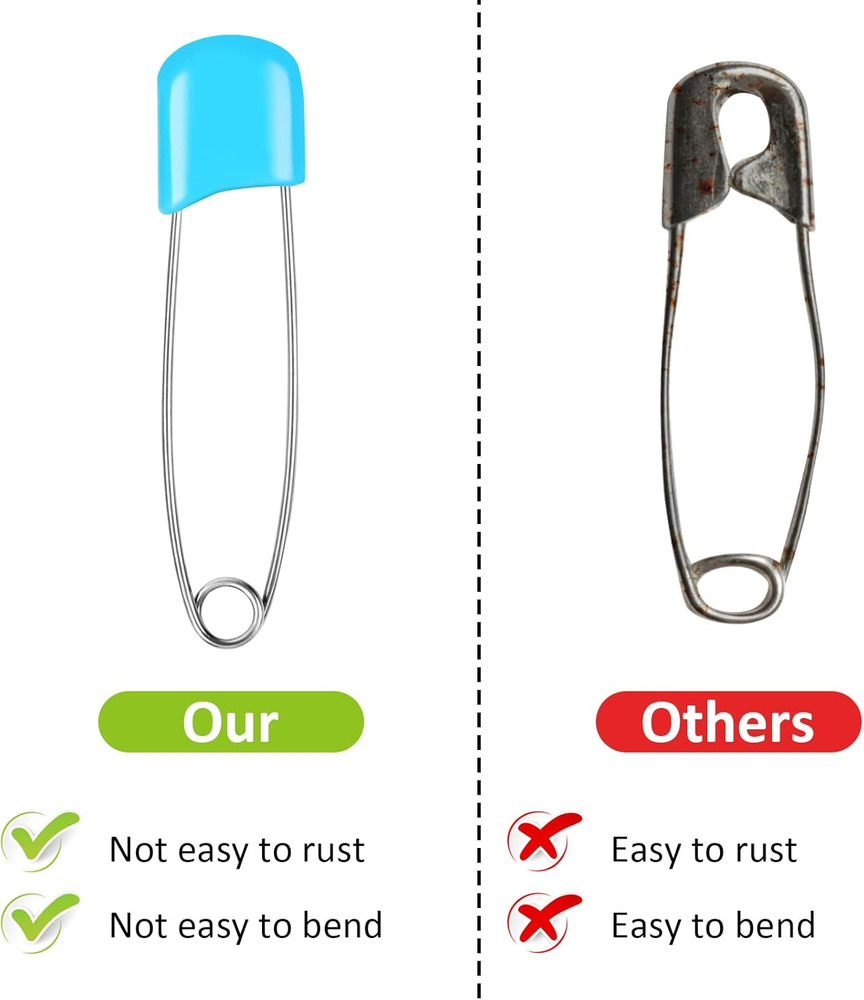 Store New Arrivals Add to Favorite View Feedback 100 Pcs Diaper Pins, 2.2In Diaper Pins for Cloth Diapers Heavy Duty, Stainless Steel Baby Safety Pins, Plastic Head Baby Pins with Safe Locking Closures (6 Colors) Description Item model number EF001 Color Multicolored Brand Joyberg Material Stainless Steel Item Weight 4.4 ounces Manufacturer Joyberg Package Dimensions 3.86 x 2.01 x 1.54 inches Number of Pieces 100 BRIGHT COLORS: Package includes 100 pcs diaper pins. Our diaper pins come in 6 colors (Red, yellow, pink, blue, green and purple). Sufficient quantity for your use. Baby safety pins size is 2.2 x 0.5in (L X H). HIGH-QUALITY: Our baby safety pins diaper pins for cloth diapers heavy duty are made of stainless steel. Not easy to bend, good gloss, no rust. You can put them in the washing machine. The top of the diaper pin is composed of sturdy plastic and can withstand the drag. SAFE DESIGN: The baby safety pins baby diaper pins have a strong ABS plastic safety lock at the top and a unique U-shaped groove design that is not easily opened by the baby, making it safe and reliable. Plastic safety locks built to outlast tugging, pulling and even machine laundering. FOR DIAPERING AND MORE: Diaper pins are great for diapers, and they can also be used for crafts, jewelry, laundry pins, jewelry making, blankets, skirts, knitted fabric and dozens of other purposes. WHAT YOU GET: 100 Pcs Baby Safety Pins (colorful), our 7*24 friendly customer service for peace of mind. Stainless steel with ABS plastic top Locking head for safety Product Description High quality The diaper pin is made of stainless steel and ABS plastic, topped with solid plastic safety locks built. Stainless steel needle function lock plastic head which resist bending, breaking or rusting. Convenience & safe to use, this cloth diaper pins sturdy, stay closed and easy to use. Bright color Bright color and superior quality well designed plastic head safety pins. The color like candy makes people feel happy. Your baby will like it! Unique design Unique u-groove design, pin is not easy to pop up, safe design, easy to use. Topped with solid plastic safety locks built, that can hold well baby's diaper to outlast tugging, pulling and even machine laundering. Application: Diaper pins are great for diapers, and they can also be used for crafts, jewelry, laundry pins, jewelry making, blankets, skirts, knitted fabric and dozens of other purposes. SPECIFICATION: Material: Stainless steel + ABS plastic. Quantity: 100 mixed color pins. 6 Colors: Red, yellow, pink, blue, green and purple. Size: 55mm/ 2.2inches ABOUT US We offer the best prices around on high quality products. Our E-store includes media such as books, movies, music and games while offering electronics, toys, sporting apparel, clothing, tools, general home, garden items and more. SHIPPING We are always working hard to ensure your package arrives as soon as possible. Please understand that some factors like weather, high postal traffic, and the performance of shipping companies are outside of our control. We offer free shipping to the lower 48 states and ship within 2 business days of payment, usually sooner. We do not accept P.O. Boxes. Please provide a physical address. RETURNS We offer a 30-Day Return Policy on items which you are not completely satisfied with. You have the option for a full-refund or an exchange of the item. No returns are available on items shipped outside of the USA. PAYMENT We accept PayPal. CONTACT US This page content is yet to come Please ad us to your favorite seller and visit again later Thank You