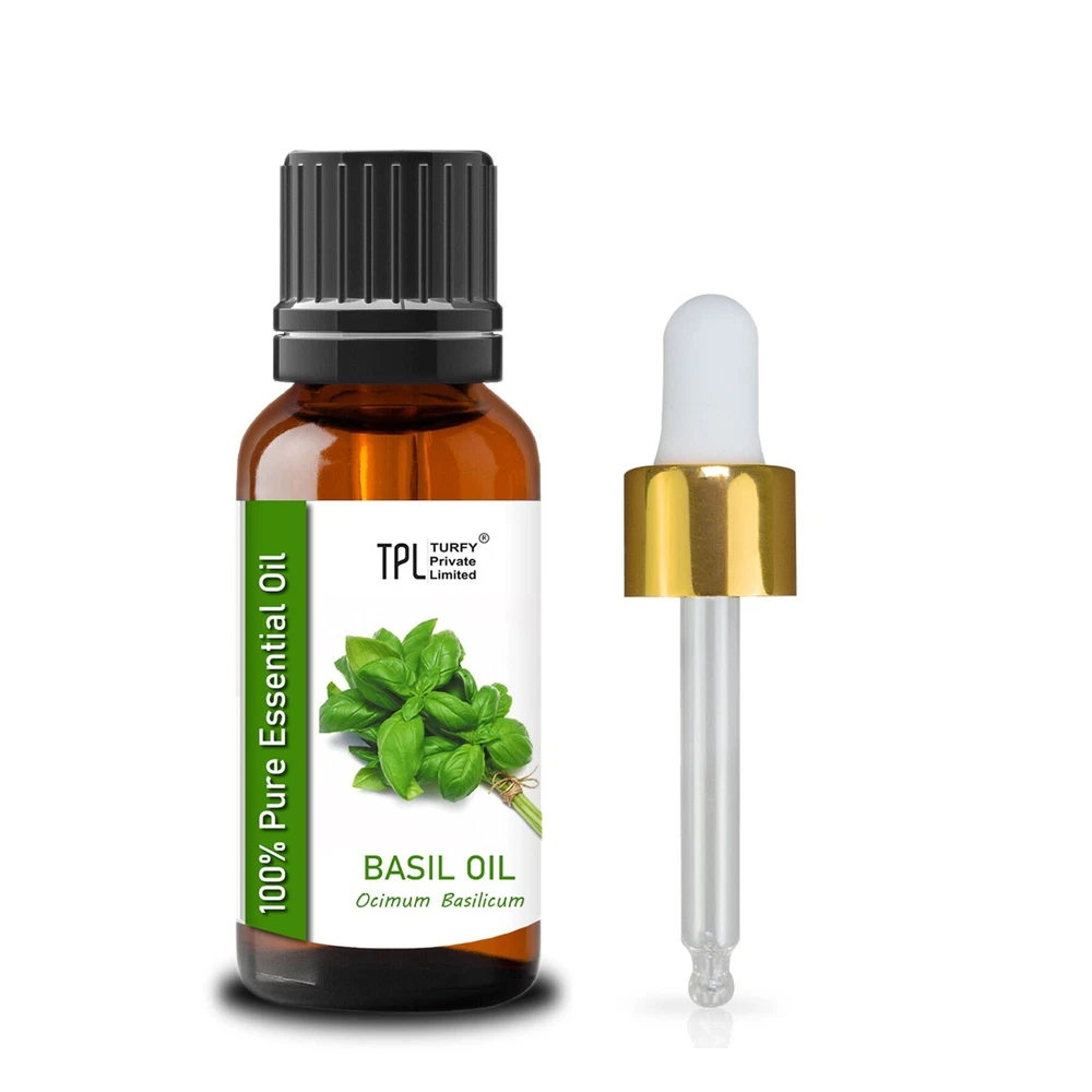 Product details:- Basil oil 100% Pure Essential Oil Bottle information:- Glass Amber Bottle - 10ml To 100ml Product description:- Botanical Name: Ocimum Basilicum Family Name: Lamiaceae Common Name: Basil or Sweet Basil Part Used: Leaves Extraction Method: Steam Distilled Blends Well With: bergamot, clary sage, clove bud, lemon, eucalyptus, juniper, lime, neroli, rosemary Basil is an aromatic herb that originated from India, and is popular among the locals by the name of Tulsi. It is also known by the nickname “Queen of Herbs” due to its unique and incomparable properties. Basil essential oil is a powerful essential oil that has a herbaceous-peppery scent that instantly helps invigorate and clear the head, and also helps in relaxing the nerves. Uses and Benefits Basil essential oil is a natural relaxant and has a calming effect. This essential oil reduces discomforts caused by migraine pain, depression, fatigue, mental stress, and other mental conditions. It is widely used in aromatherapy. People who make this essential oil a part of their daily lives gain mental strength and clarity. Basil essential oil to heal itchy skin Basil essential oil contains chemical compounds like eugenol, citronella and linalool. These compounds are effective in inhibiting enzymes and consequently help reduce inflammation. Basil essential oil is very useful in relieving itching caused by honey bee stings, insect stings or bites. Used: Basil oil can be mixed with a carrier oil like jojoba or argan oil to prevent acne and even out skin tone. Before applying basil oil directly to the skin, it should be diluted with carrier oil like coconut oil. Since basil oil is potent, it is recommended to start slowly and use a few drops at a time Return Policy:- If you are not 100% satisfied with your purchase, you can return the product and get a full refund or exchange the product for another one, be it similar or not. You can return a product within 30 days from the date you purchased it. **Customs information** Turfy will not be liable for packages that are refused or held back for delivery by customs. We request that you contact your customs office before placing your order and ask about import regulations and restrictions. It is important for you to be familiar with your specific country's customs policies before placing an order.