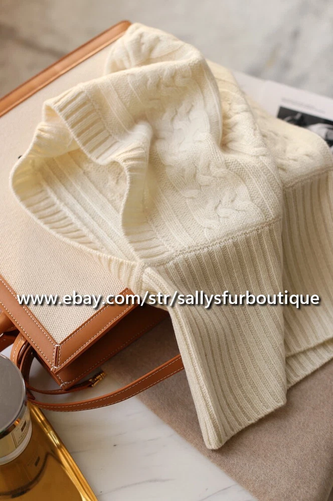 About Cashmere: Cashmere is a luxuriant wool that many a fashion-conscious woman has dreamed of wearing against her skin. Its silken feel, feather-light weight, and appreciable status make it highly desirable. It is the wool or fur of the Kashmir goat. 70% Kashmir goats in the world are raised in Inner Mongolia, China. Be wary of imitation cashmere. Often listings are stated as 100% cashmere, however are imitation cashmere, which does not have the special features of pure cashmere. Item description: Material: Pure cashmere, made in inner Mongolia. Size: 47cm High x 32cm Wide Lay flat Process: Double worsted twisted woven. Weight: 156 gram.