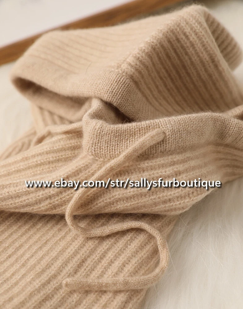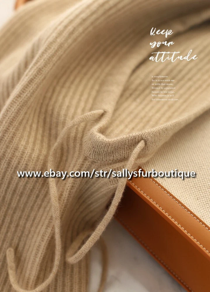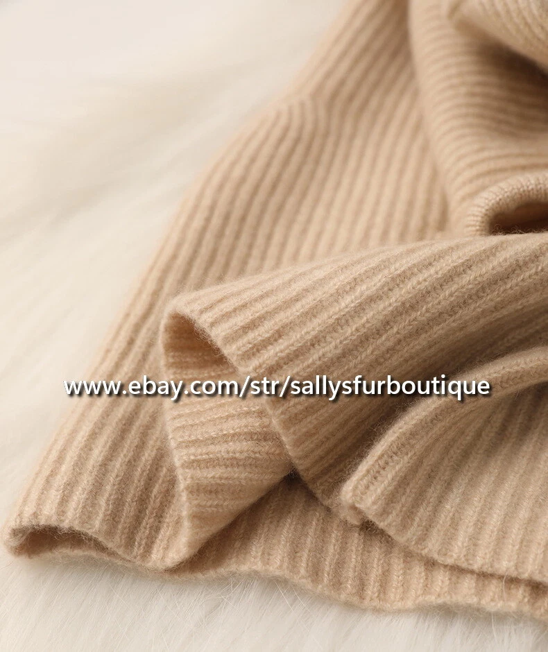 About Cashmere: Cashmere is a luxuriant wool that many a fashion-conscious woman has dreamed of wearing against her skin. Its silken feel, feather-light weight, and appreciable status make it highly desirable. It is the wool or fur of the Kashmir goat. 70% Kashmir goats in the world are raised in Inner Mongolia, China. Be wary of imitation cashmere. Often listings are stated as 100% cashmere, however are imitation cashmere, which does not have the special features of pure cashmere. Item description: Material: Pure cashmere, made in inner Mongolia. Size: 48cm High x 30cm Wide Lay flat Process: Double worsted twisted woven. Weight: 125 gram.